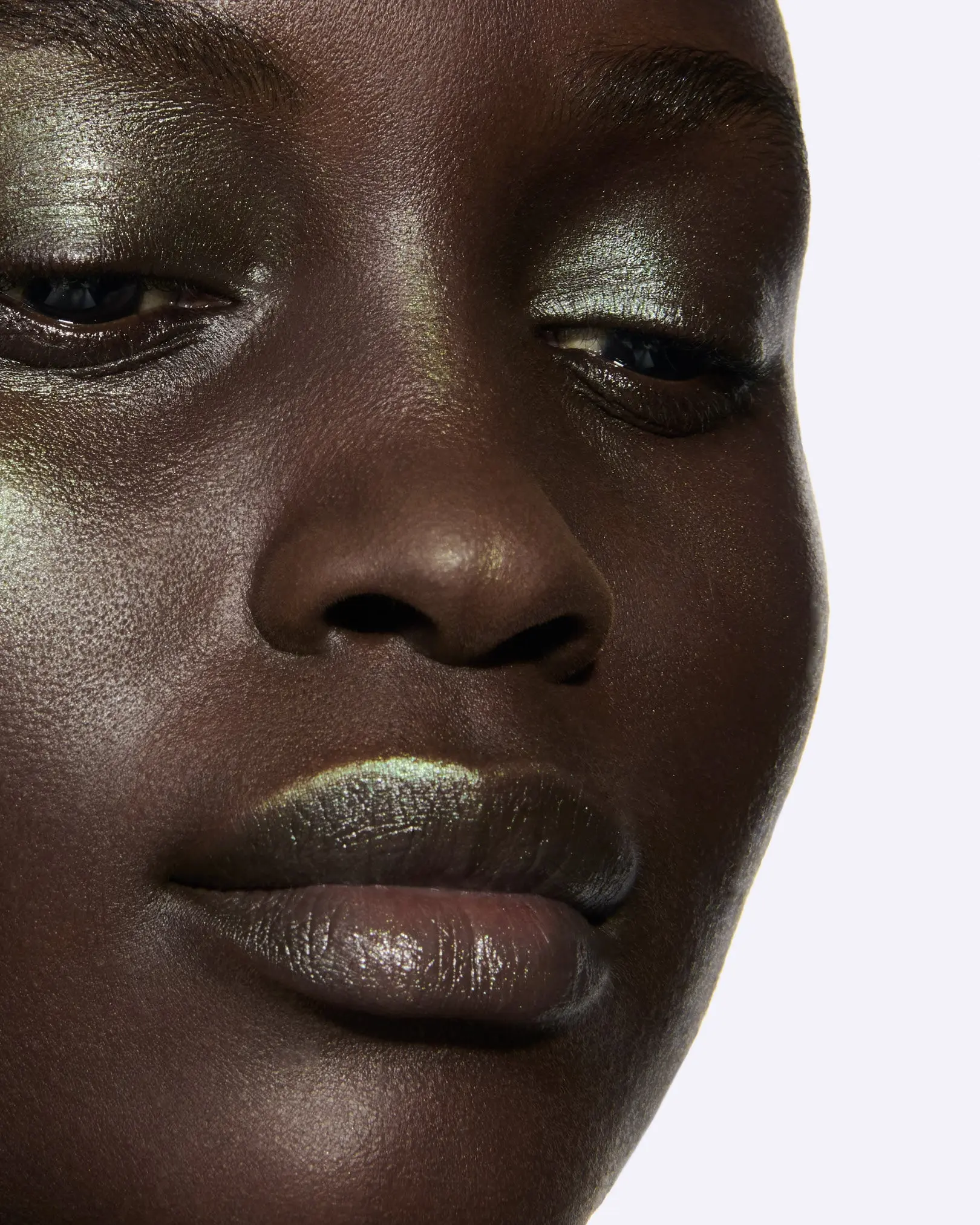 It’s a beautiful creamy/ dry product. However it is a duo chrome and it shifts to more green on browner skin tones . Make sure your skin is moisturized before using it to absorb the green undertone