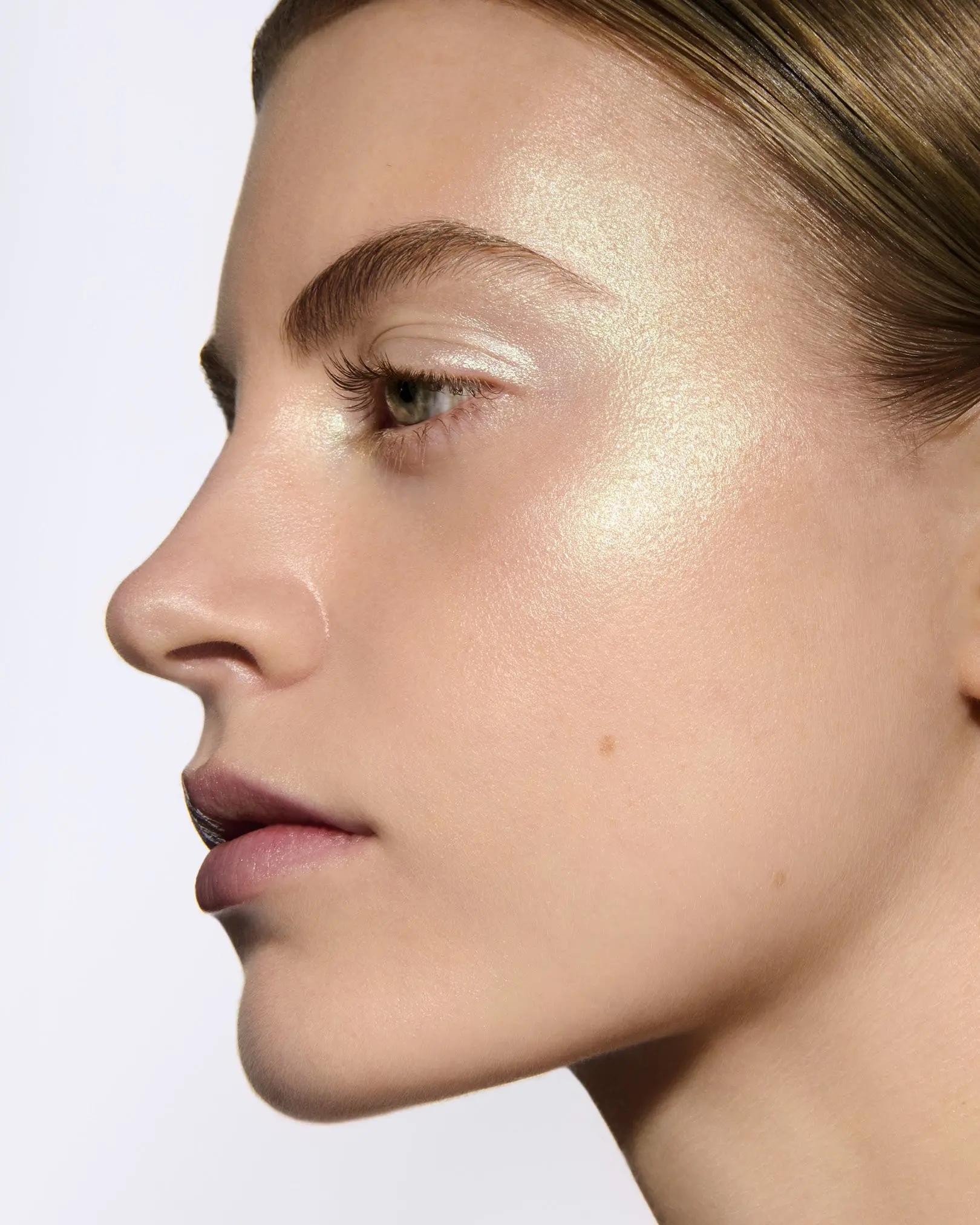 Godmode highlighter is perfectly hydrating and shimmery is not a powder highlighter and doesn’t get caught in fine lines and wrinkles.