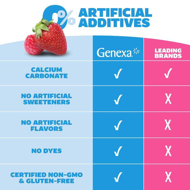 Genexa Kids’ Tummy Relief is real medicine, made clean - providing soothing relief of heartburn, acid indigestion and upset stomach. These chewable tablets have the same active ingredient you need (calcium carbonate), but without the artificial ones you don’t (dyes, common allergens, talc). We only use ingredients people deserve to make the first gluten-free, non-GMO, certified vegan medicines to help your little ones feel better.