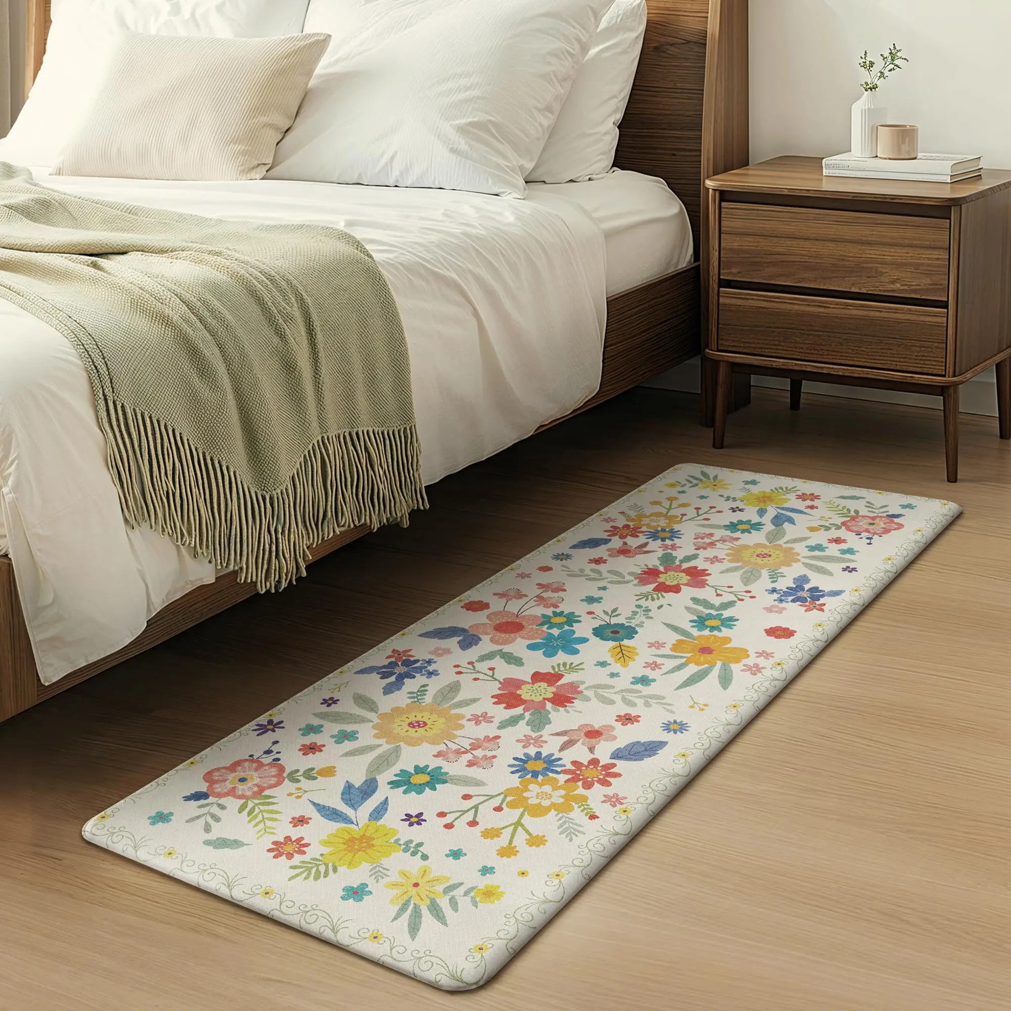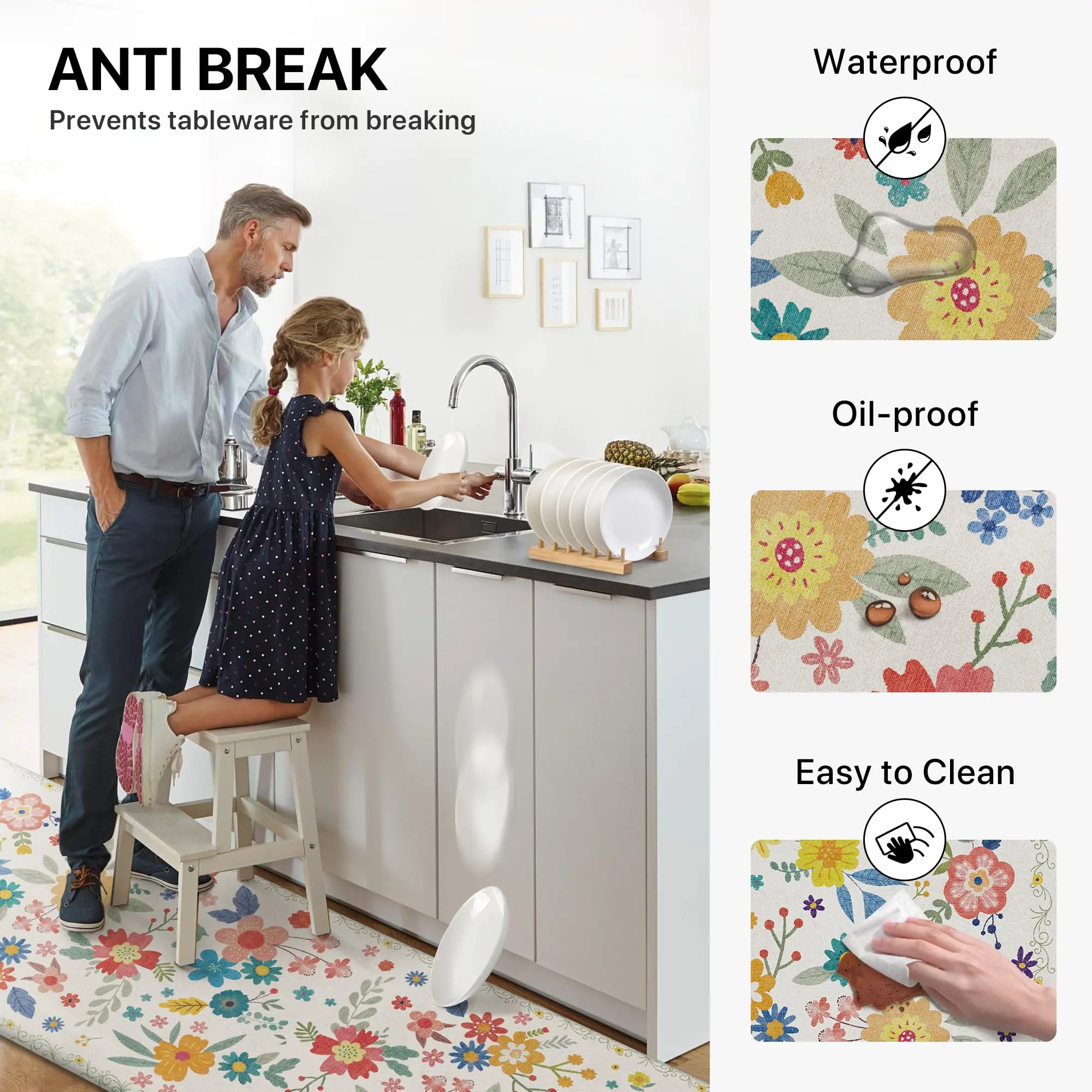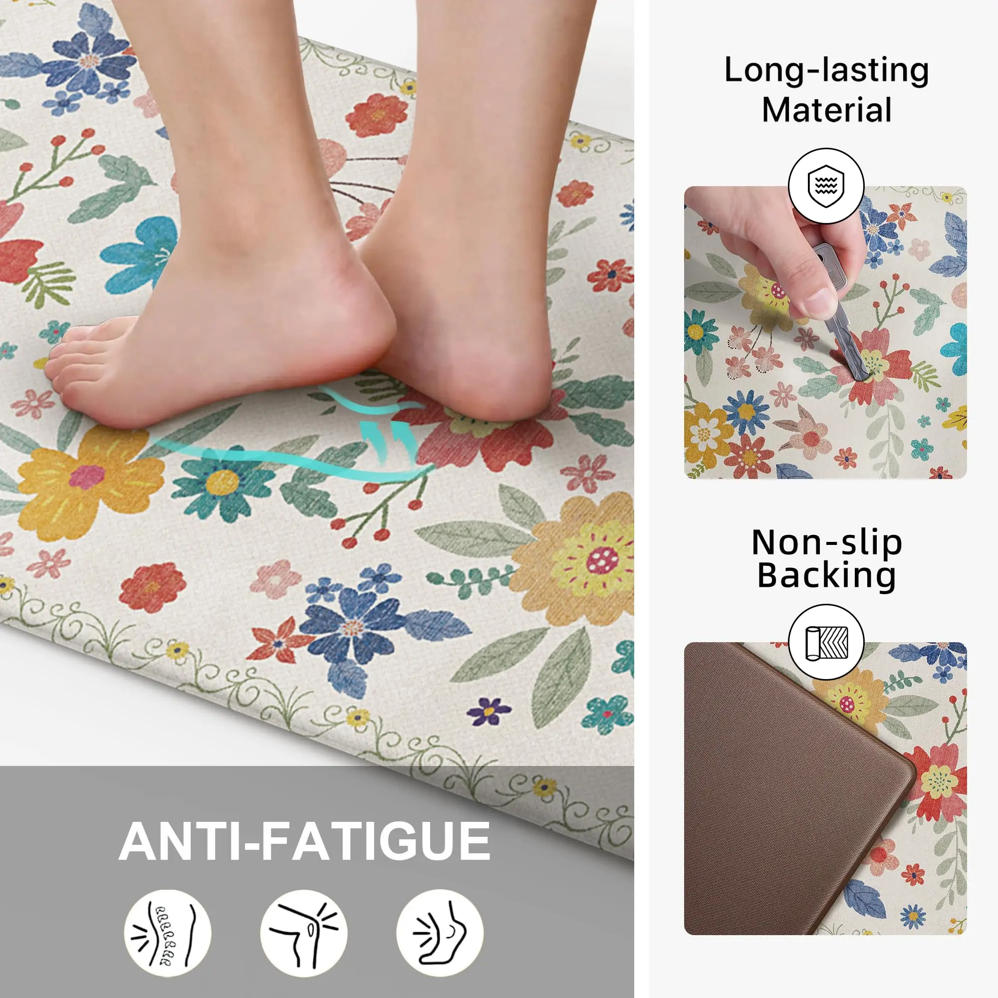 Designed with a non-slip backing, this mat stays secure in place, even in busy areas. It's safe for both children and pets, ensuring peace of mind while adding comfort to your floors. The mat is 0.4 inches thick, providing anti-fatigue cushioning and durability for long-term use.