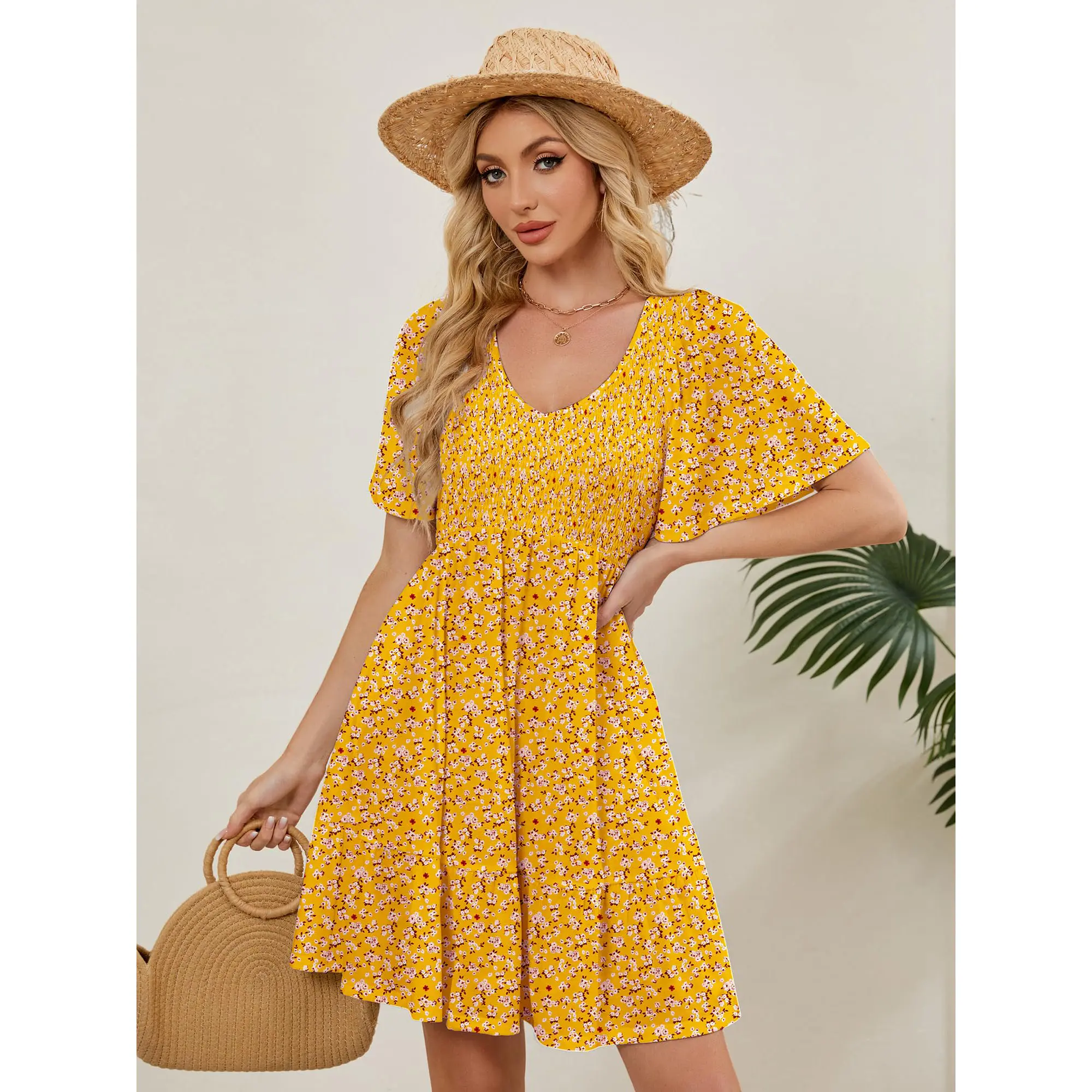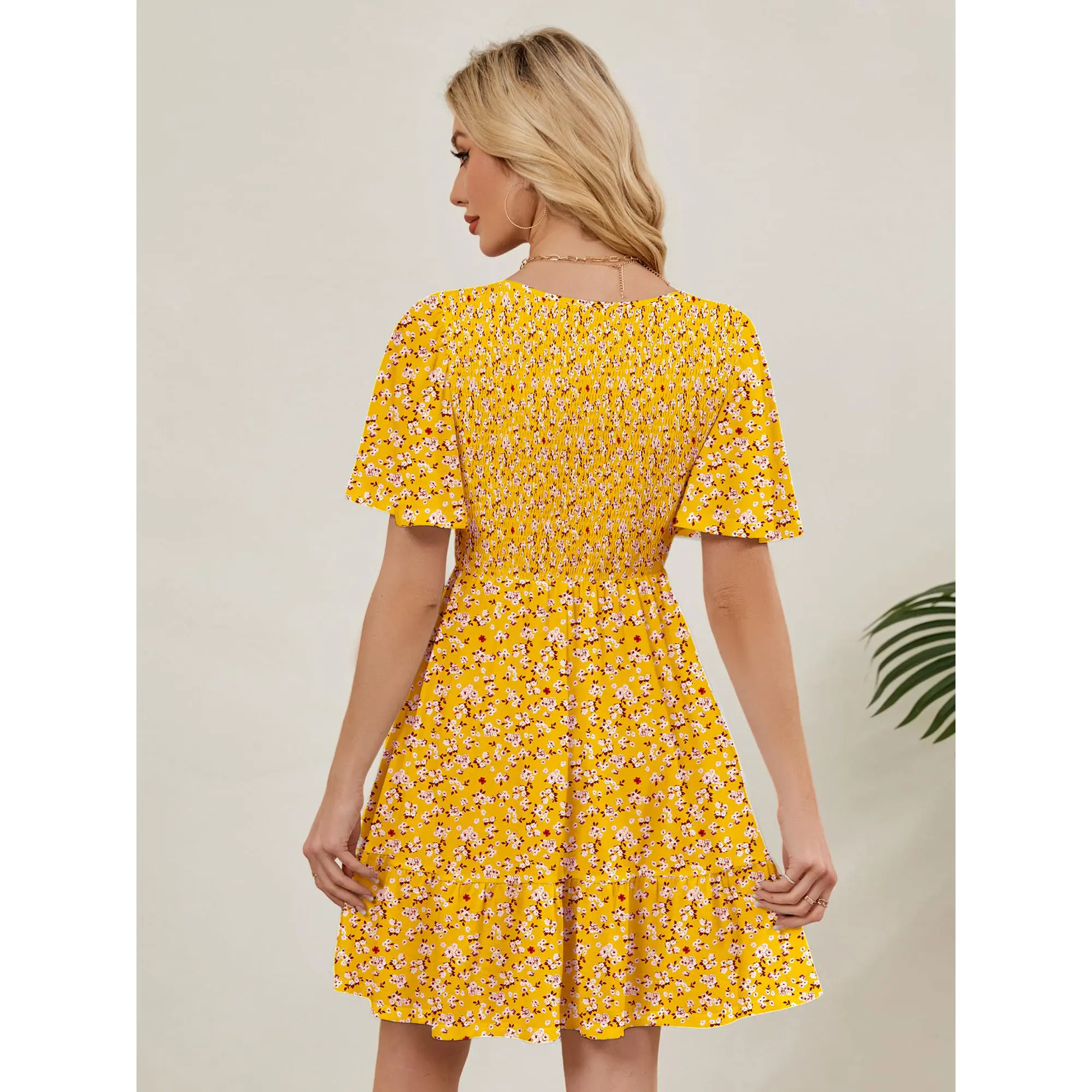 ·【Package Include】Each package includes one women's spring summer sun dress adorned with a charming floral print and ruffle flutter sleeves, adding a touch of femininity to your ensemble.