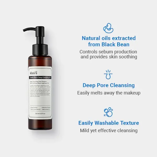 ✨ Discover the [Dear, Klairs Official Shop] Gentle Black Deep Cleansing Oil! This 150 ml formula is perfect for gentle cleansing. It's designed with a vegan approach, ensuring it aligns with your skincare values. The oil offers a deep cleanse without harshness, making it ideal for daily use.