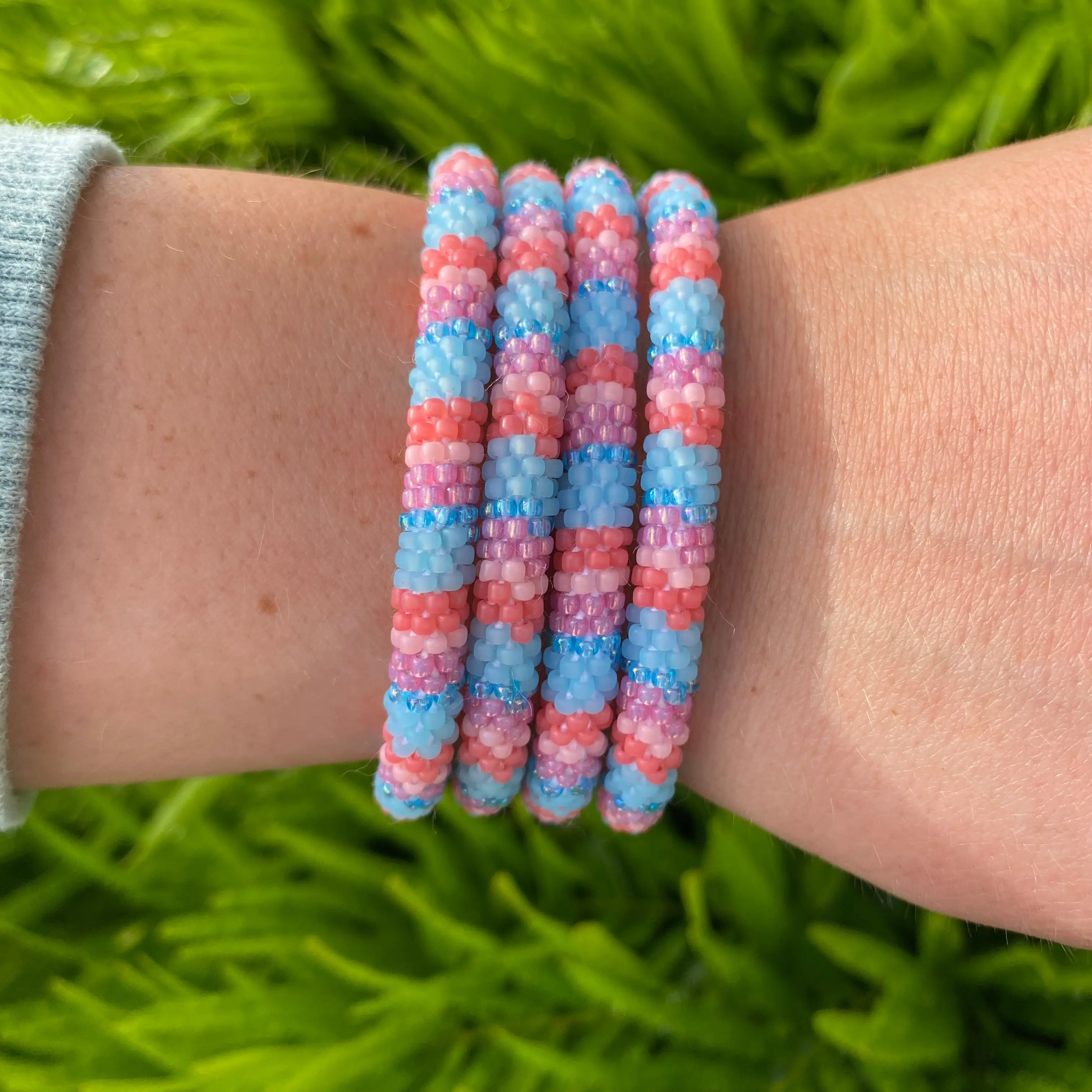 This Sashka Co glass beaded bracelet was hand-crocheted by a skilled artisan in the Kathmandu Valley of Nepal. It features a smooth roll-over design. Sashka Co. Bracelets make amazing friendship bracelets and support fair trade, helping women in Nepal rise above poverty.