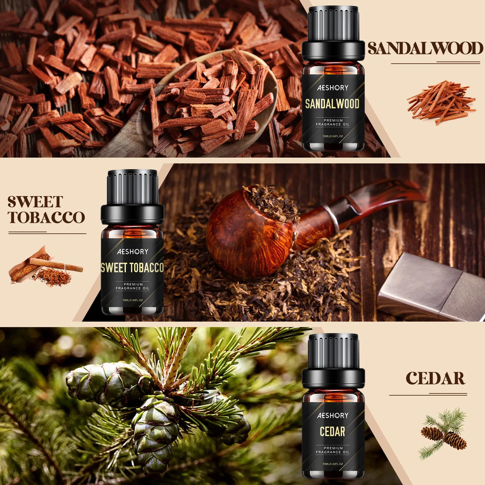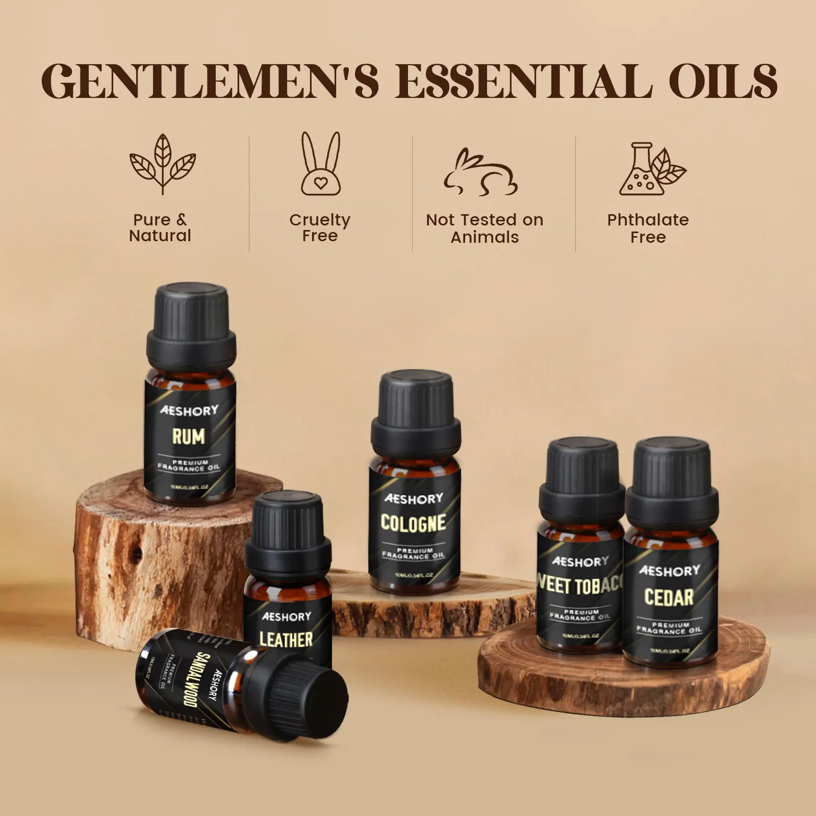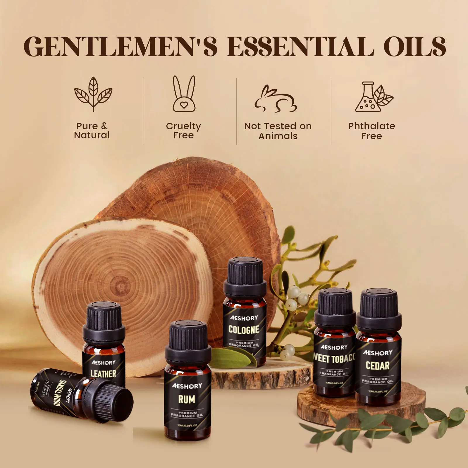 ·️【Set of 6 Gentlemen's Fragrance Oil】This men's essential oils set includes a series of manly and woodsy scents, including Sandalwood, Cedar, Leather, Bay Rum, Cologne aromatherapy oils, experience the masculine scent from smoky to woody with our men's fragrance oils set.