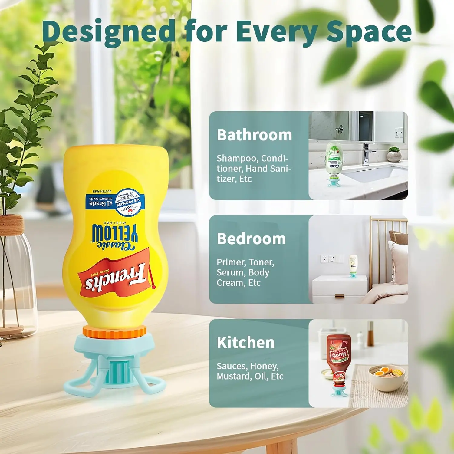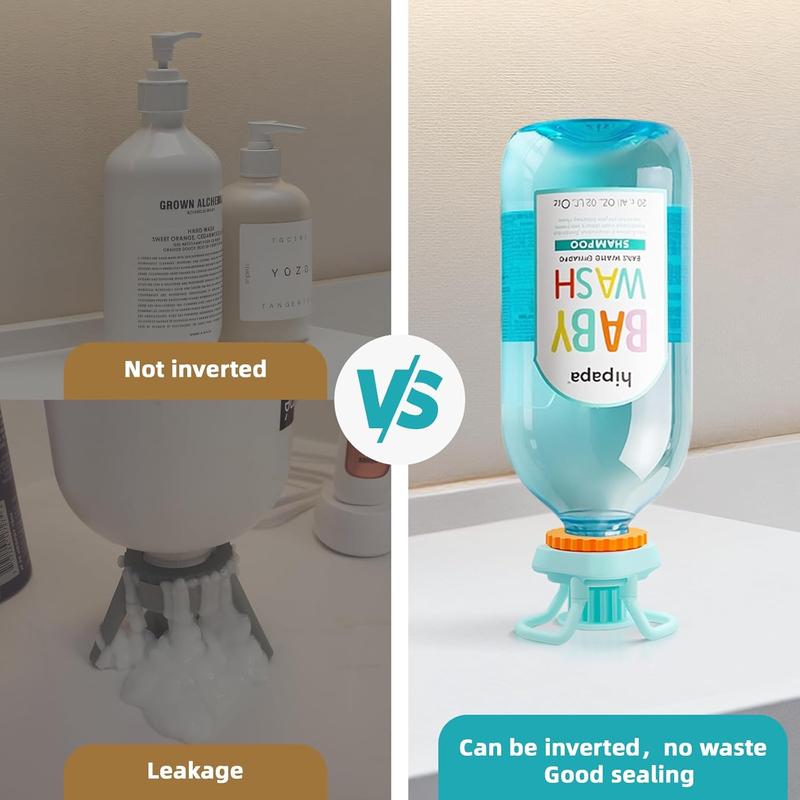 Replace your bottle's original cap or pump. Stand it upside down, and gravity does the work. Open the valve and squeeze for effortless dispensing. It's that simple! No more manual effort.