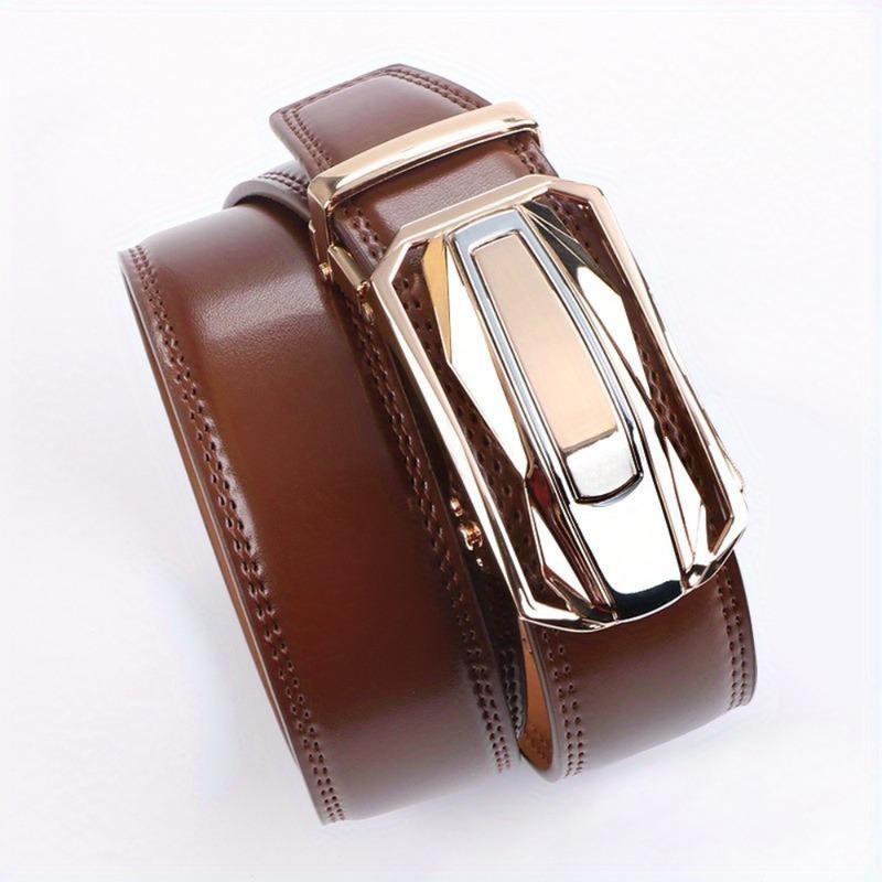 1pcs Genuine Leather Ratchet Belt for Men - Adjustable Automatic Buckle, Versatile Casual Business Style, Durable Alloy Buckle, High-Quality Leather Panel, Easy to Wear And Suitable for Any Occasionvalentine'S Day