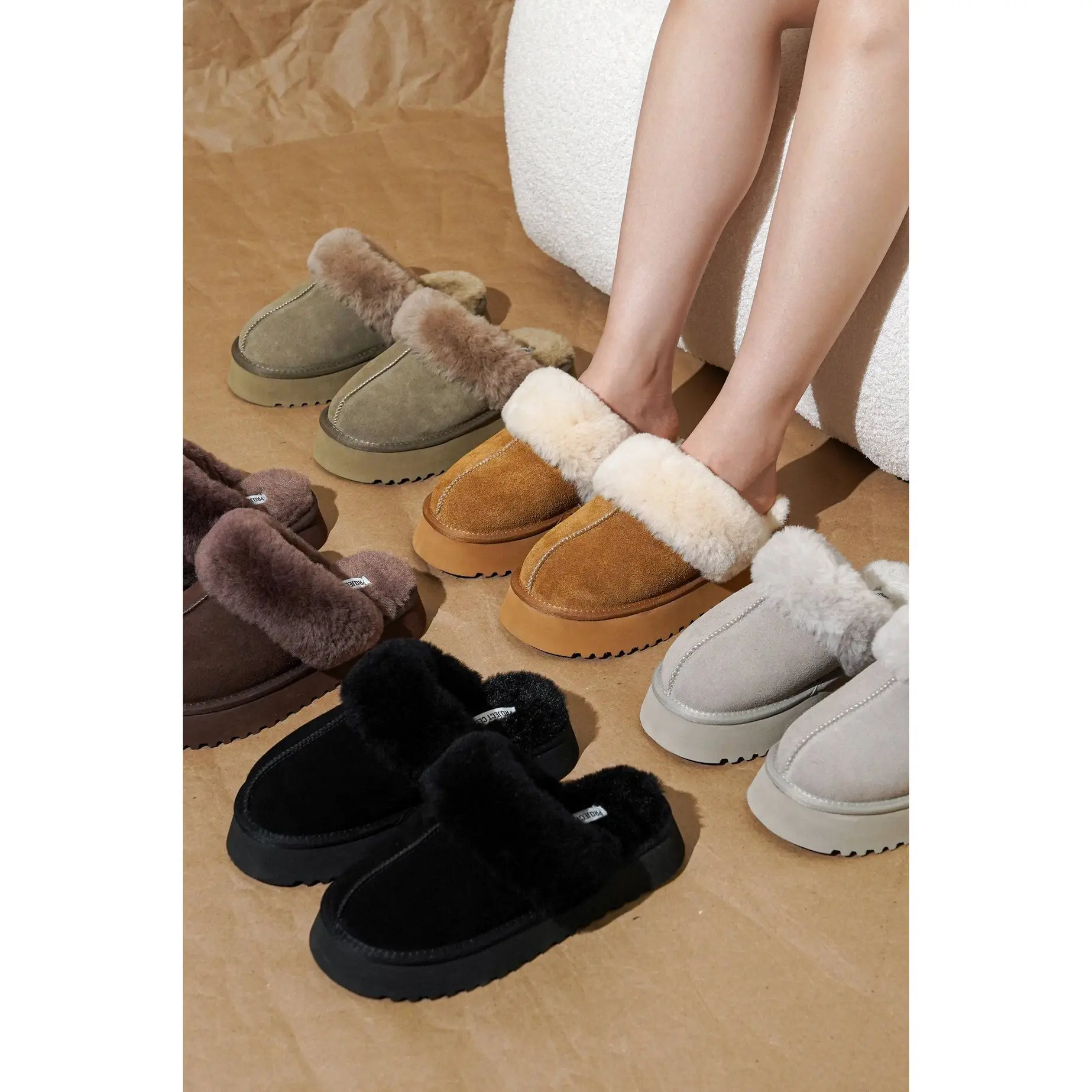 The taupe color is perfect for Fall! #platformslippers #fuzzyslippers #womensfallshoes #fallfashion