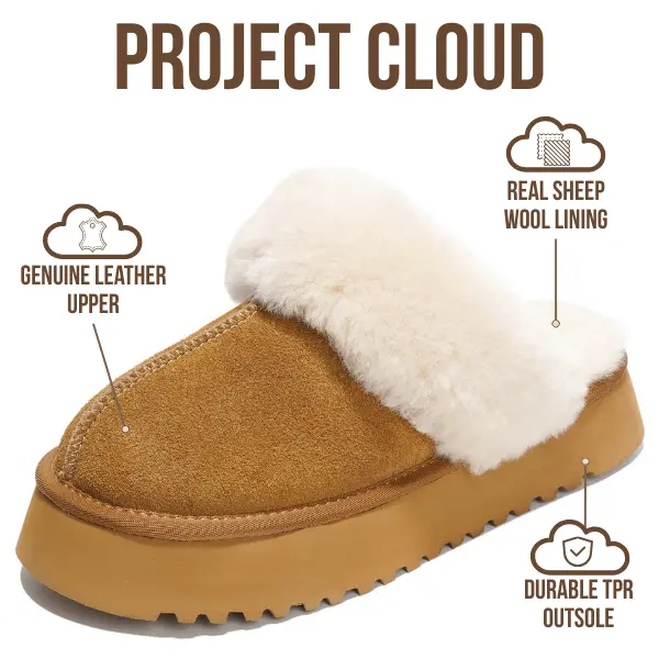 Project Cloud Women's | 100% Genuine Suede Platform Slippers | Memory Foam | Non-Slip - Viki