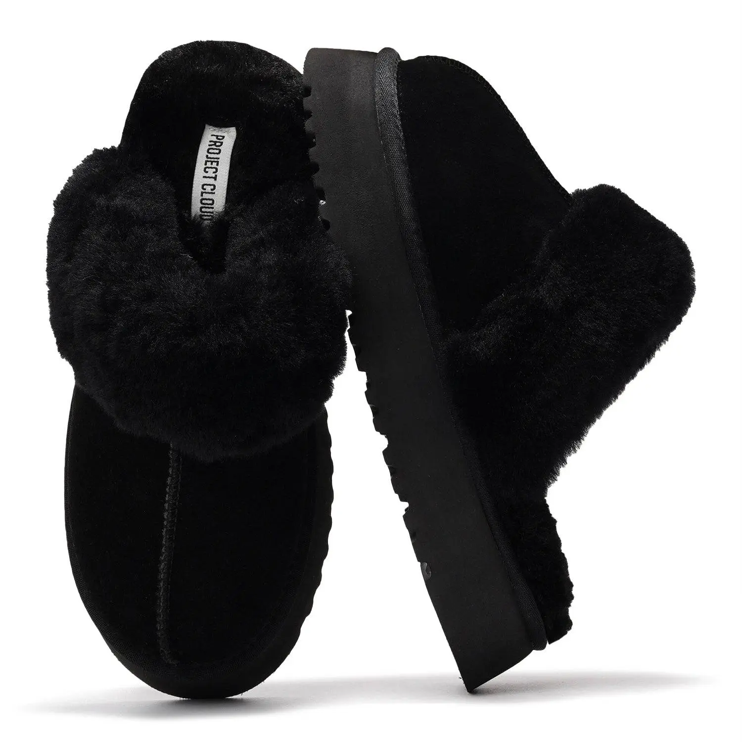 Stop she’s cuteeee 😍 #slippers #fuzzyslippers #platformslippers @Project Cloud Shop