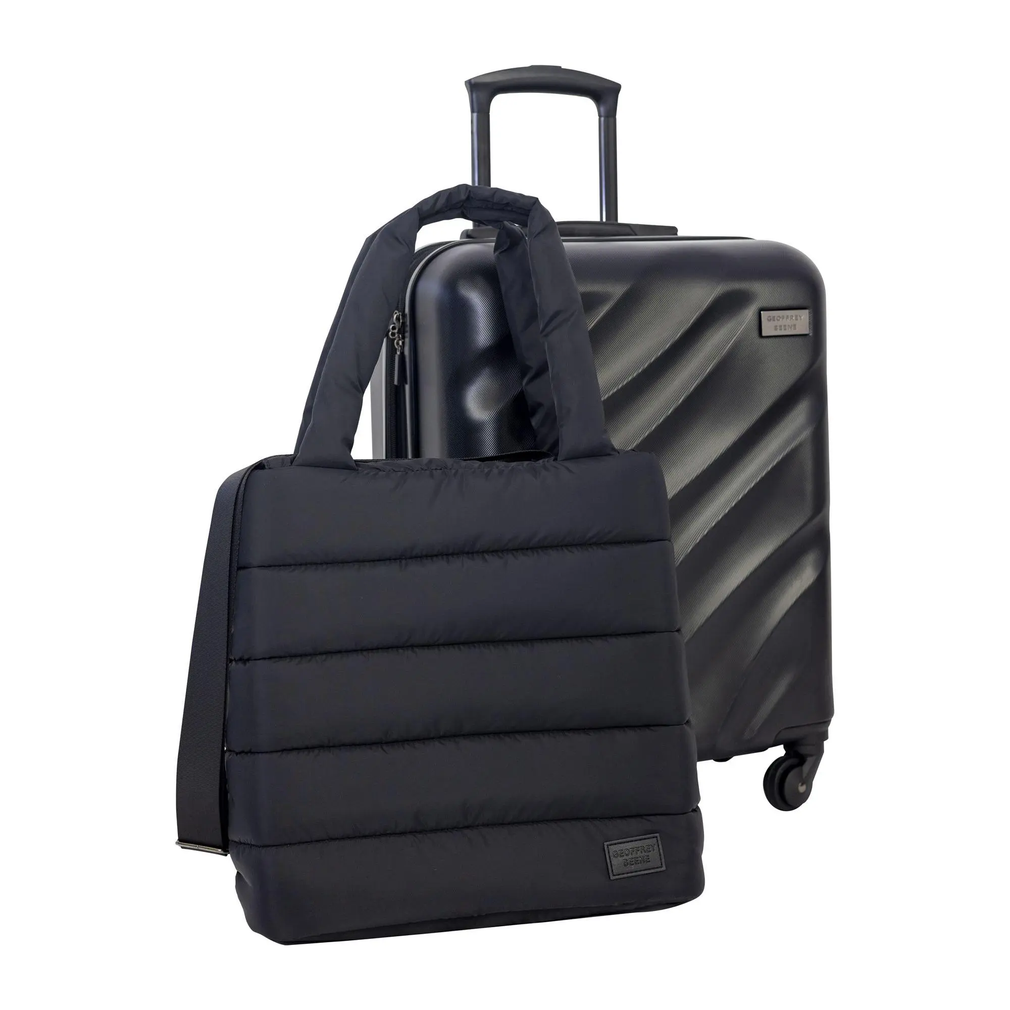 Showcase your sophisticated sense of style while you travel with this oh-so-chic luggage set. The hard-side suitcase keeps your belongings secure and contained while the puffer tote ensures your essentials are close at hand. From Geoffrey Beene.