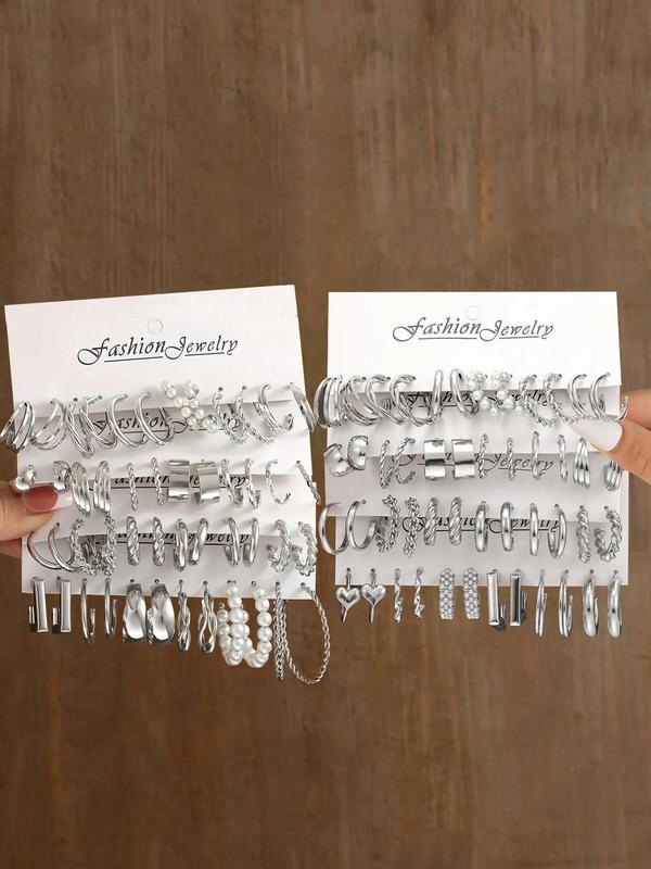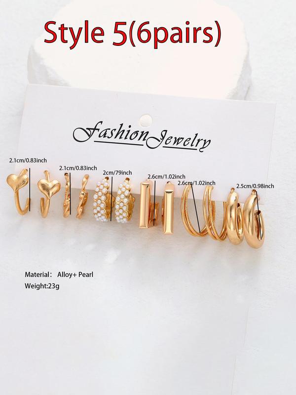 Faux Pearl Decorated Geometric Design Hoop Earrings, Summer Outfits 2024 Matching Earrings Set, Jewelry Accessories for Women & Girls, Fashionable Jewelry Accessories