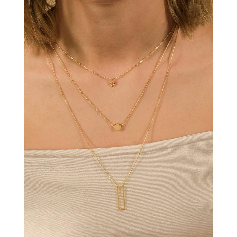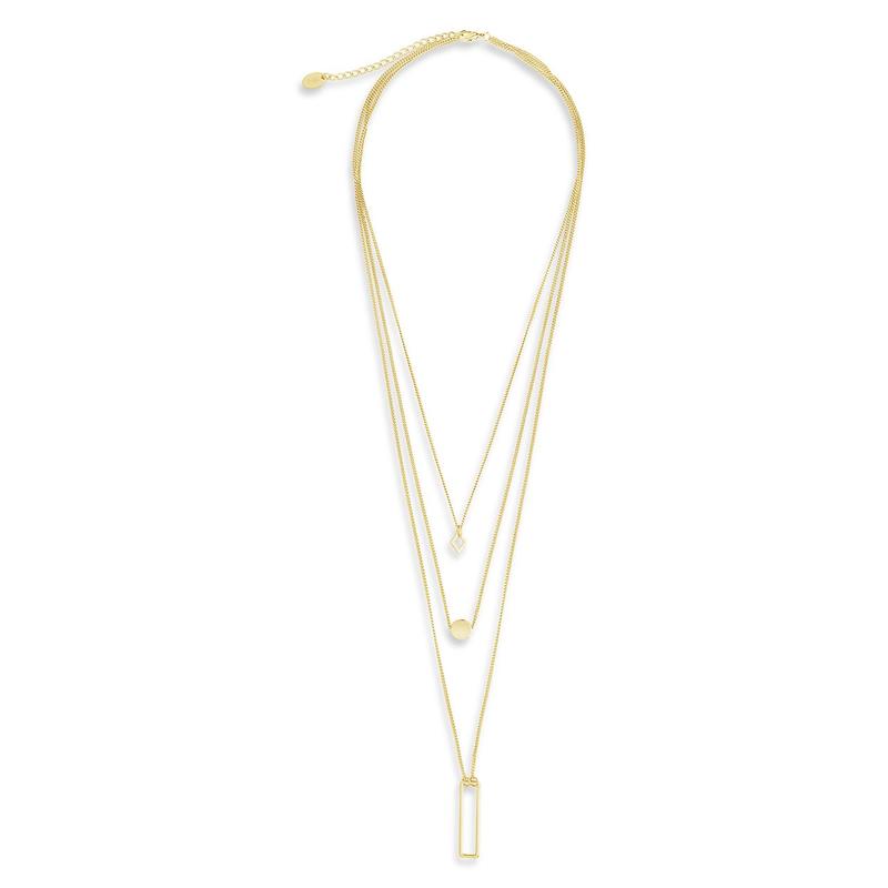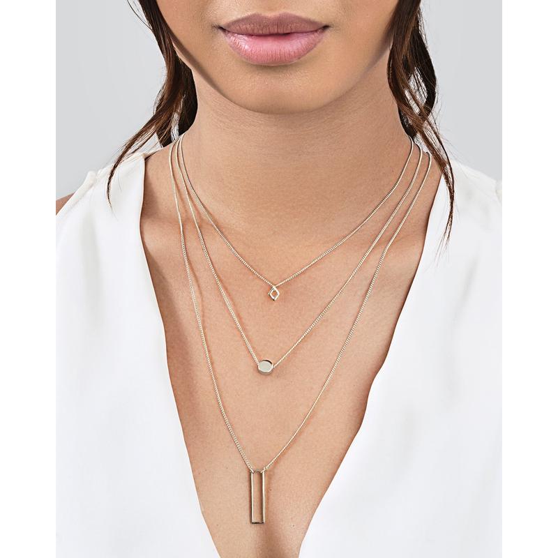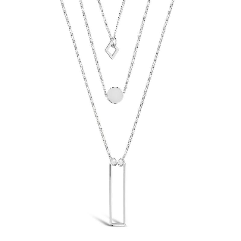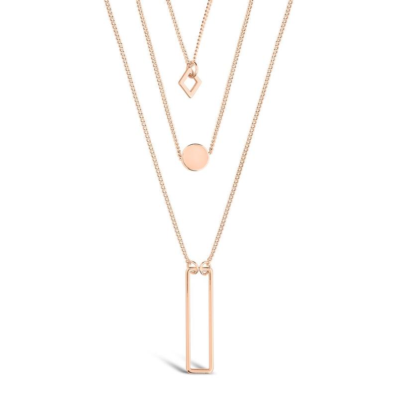 Treat yourself to an accessory as bold and on-trend as you are! This geometric multi-layer necklace features unique open geometric charms and a delicate disk. Available in gold, silver, and rose gold tones.