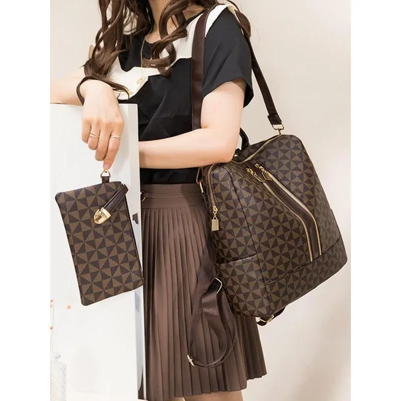 Geometric Pattern Backpack & Wallet Set ? Perfect for 2025 Summer ? This Geometric Pattern Backpack & Wallet Set is ideal for work, school, and commuting. It features a large capacity, making it perfect for college students. The vintage design adds a touch of style to your fall outfits. ?? Multifunctional Backpack Set Back To School Set This set is perfect for fall outfits and freshness. It includes a backpack and purse, making it a complete set for your school needs. ?? Ideal for College Students The backpack set is perfect for college students. It combines functionality with style, making it a great choice for fall. ??