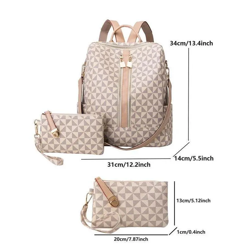 Geometric Pattern Backpack & Wallet Set ? Perfect for 2025 Summer ? This Geometric Pattern Backpack & Wallet Set is ideal for work, school, and commuting. It features a large capacity, making it perfect for college students. The vintage design adds a touch of style to your fall outfits. ?? Multifunctional Backpack Set Back To School Set This set is perfect for fall outfits and freshness. It includes a backpack and purse, making it a complete set for your school needs. ?? Ideal for College Students The backpack set is perfect for college students. It combines functionality with style, making it a great choice for fall. ??