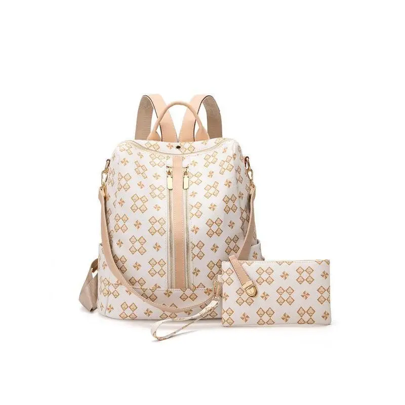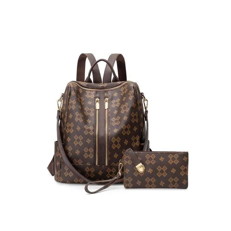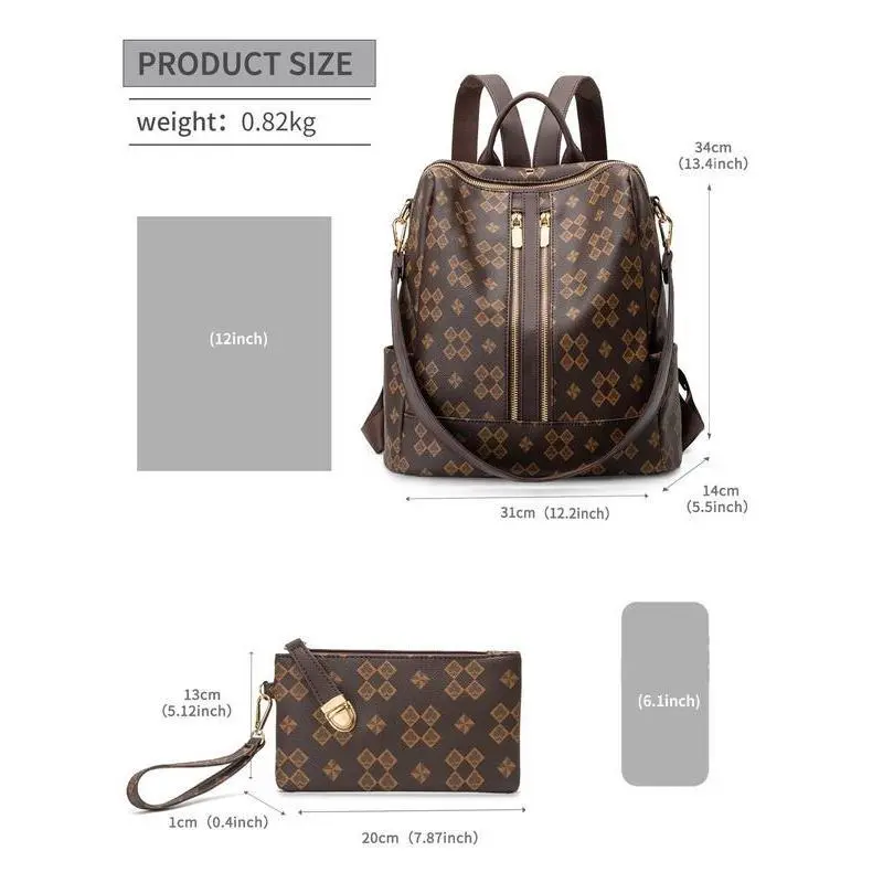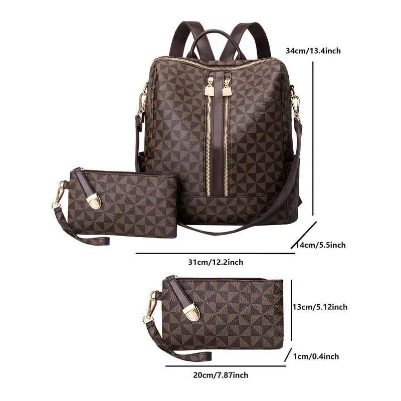 Geometric Pattern Backpack & Wallet Set, 2025 Summer Large Capacity Vintage Multifunctional Backpack Set for Work & School, Commuting College Backpack Purse Set Back To School for Fall Outfits & Fall Freshness, Backpack Set