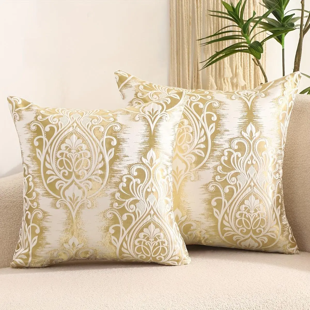 1pc Golden Decorative Cover Suitable for Living Room - Traditional Luxury Bedspread with Realistic Fabric, Hand Wash Only & Zipper Closure, Elegant Sofa Bed Accent in Rich Golden Tone