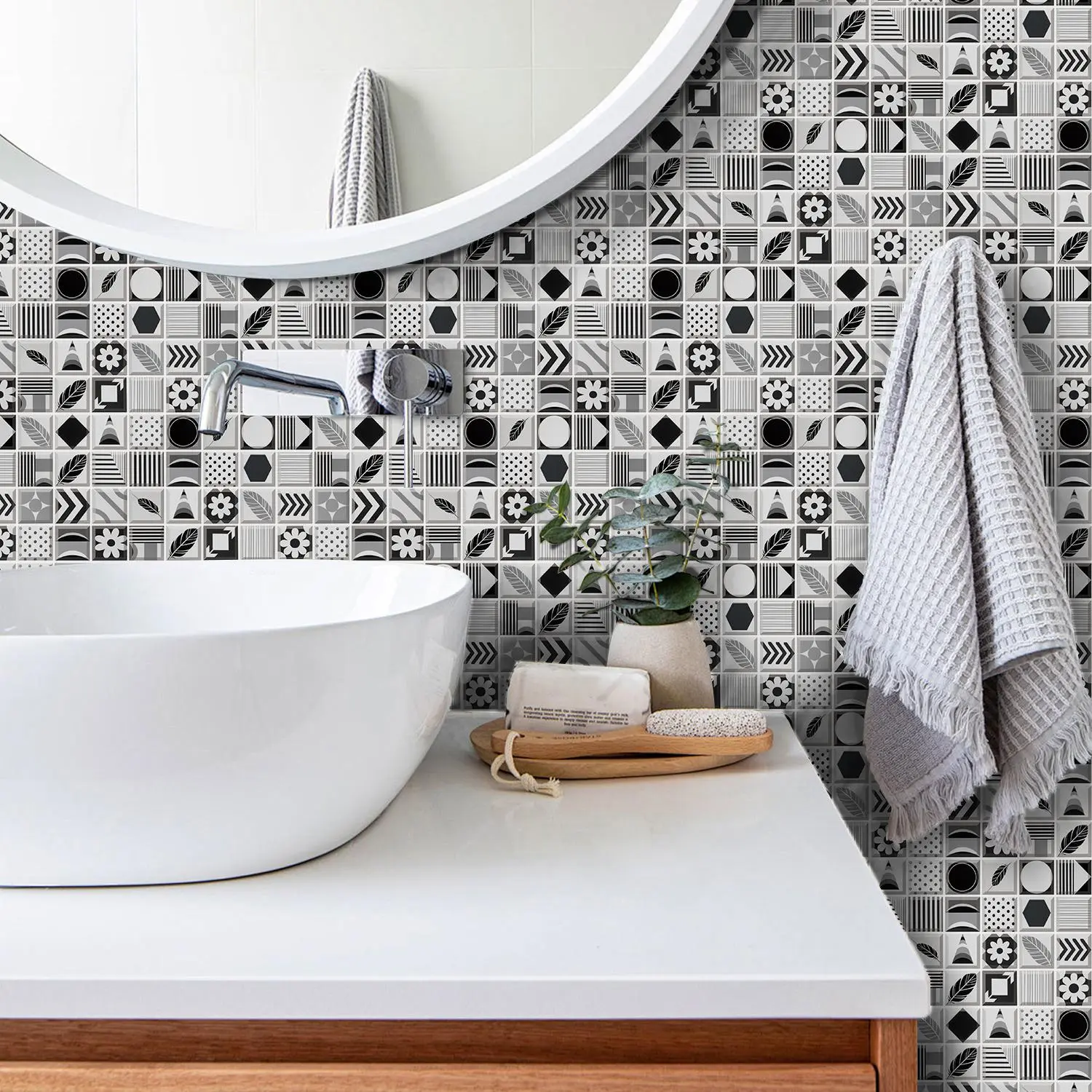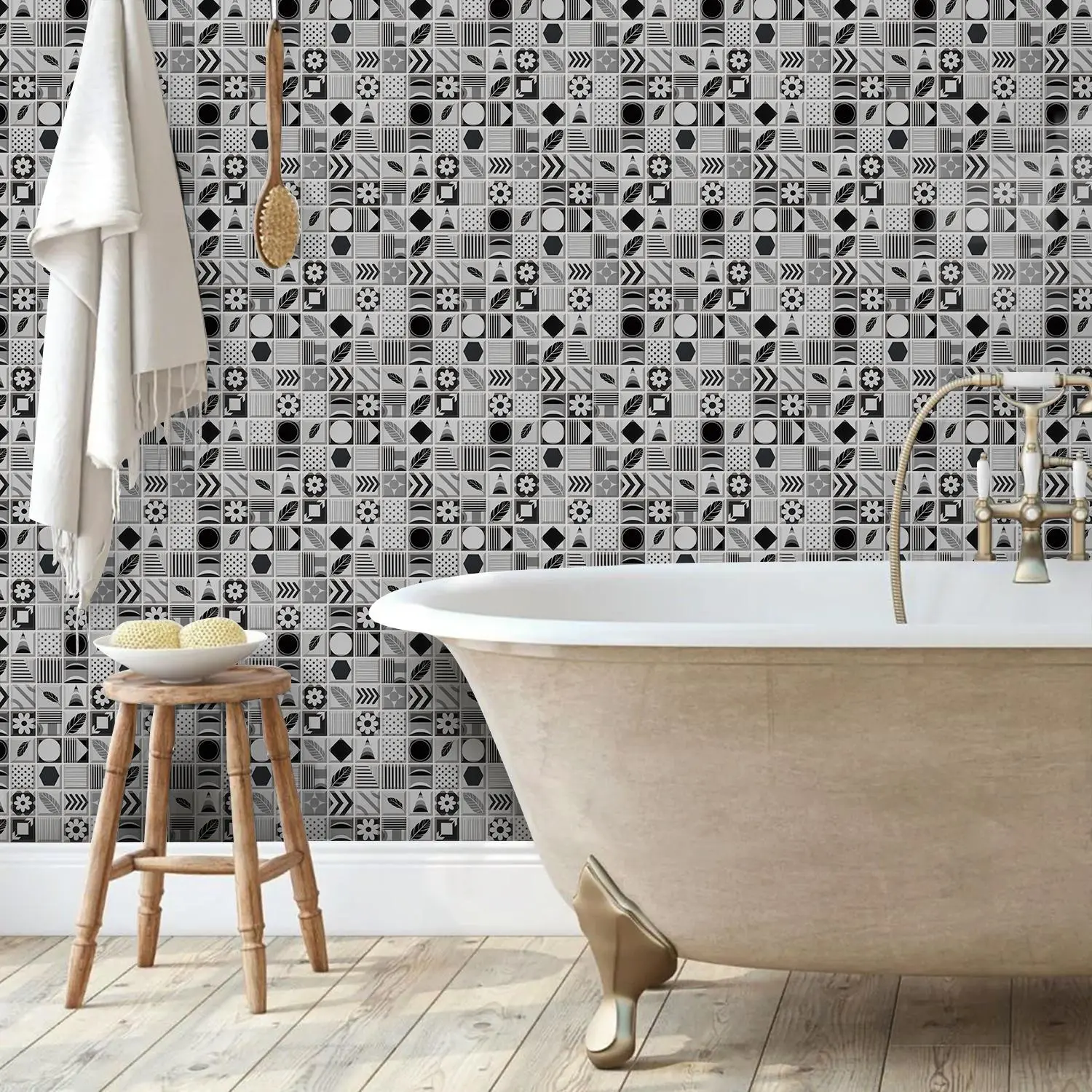 Geometric Pattern Tile Backsplash, Self-adhesive Removable Tile Backsplash, Waterproof & Oil-resistant Wall Decor for Kitchen & Bathroom
