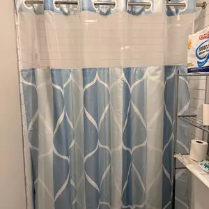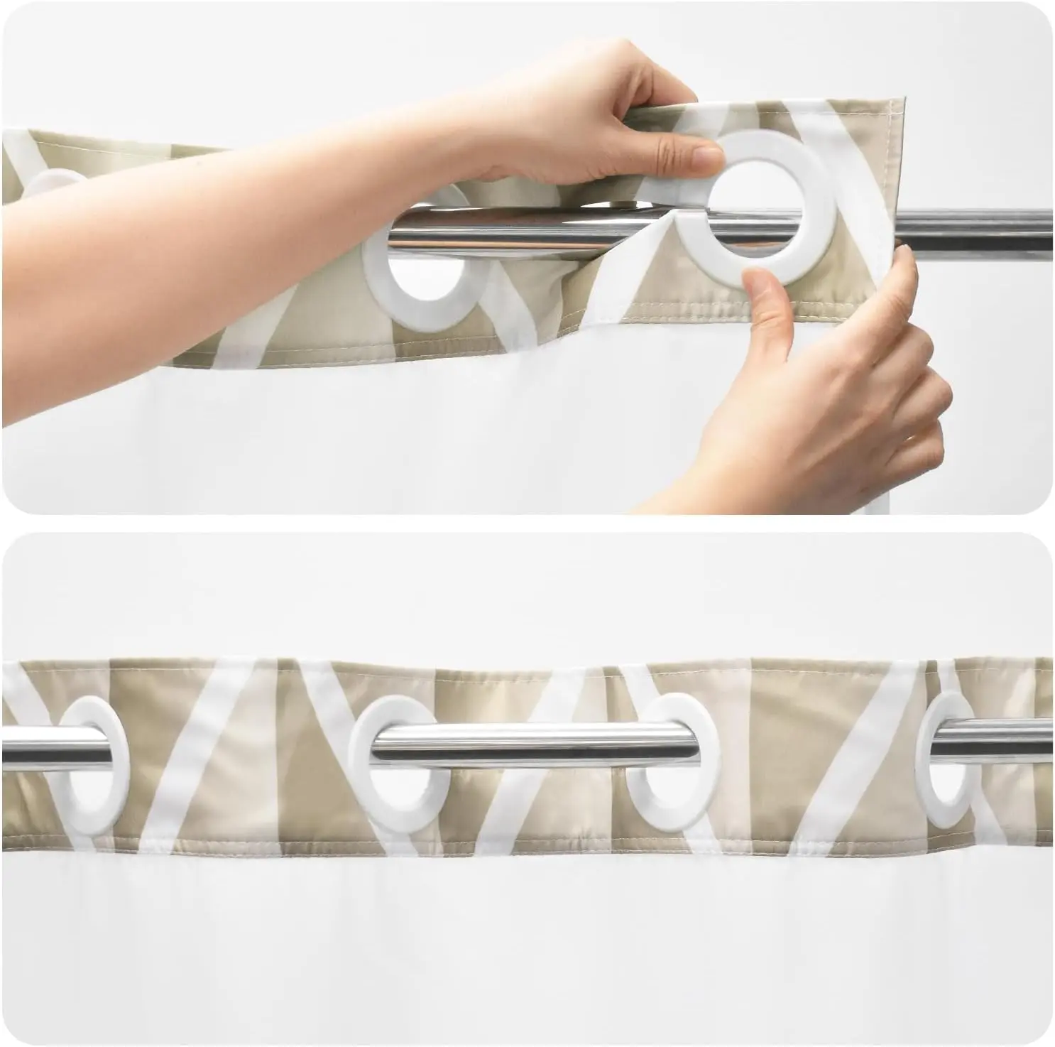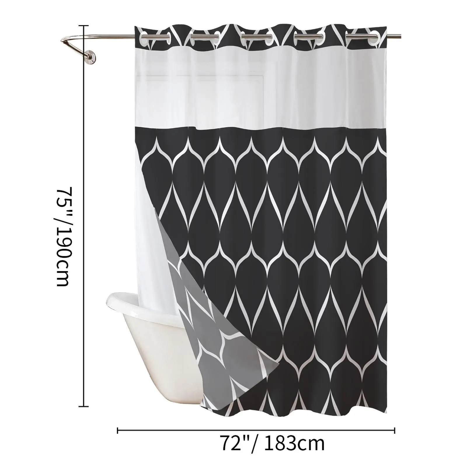 Unique design: Exquisite and elegant geometric patterns, with a tulle splicing design. There is no need to install hooks. The shower curtain adopts an internal 'C' ring, which enables quick installation.