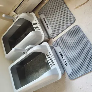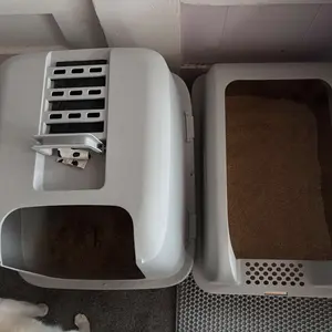 No extra parts — just a solid litter box. The high sides keep the litter inside, and it’s very convenient to clean.