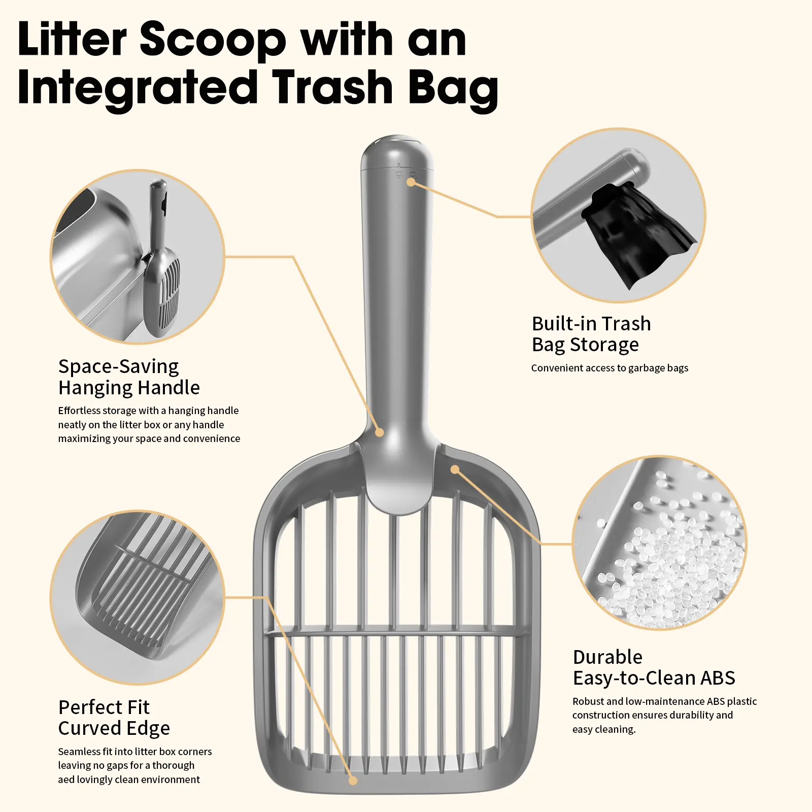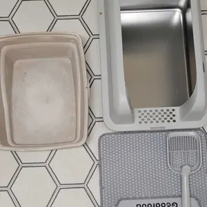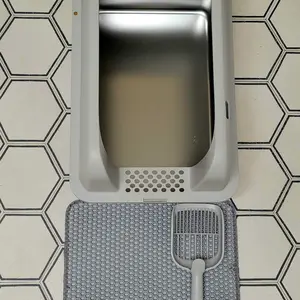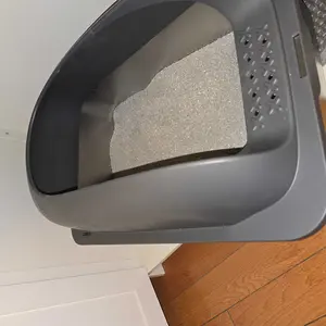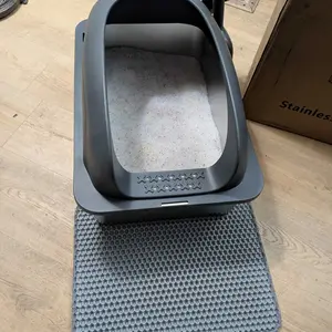 Love this litter box and accessories. It took my cats a few days to start using it. Beware it's larger than a typical box and will take more litter (pic for reference) It looks modern and already seems so much cleaner and sturdy. Shipping was fast and it was packaged well!
