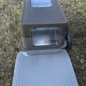 I bought this expecting just a litter box. I was very surprised when I got a litter mat and scoop with it!! It has everything you need all for a good price. The scoop even comes with a roll of bags to toss waste! The cover adequately keeps litter in the box!! No mess :)