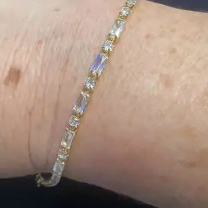 This tennis bracelet is very pretty I like the fact that it's dainty and you can wear it anytime and every day