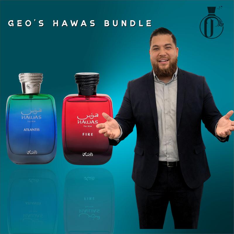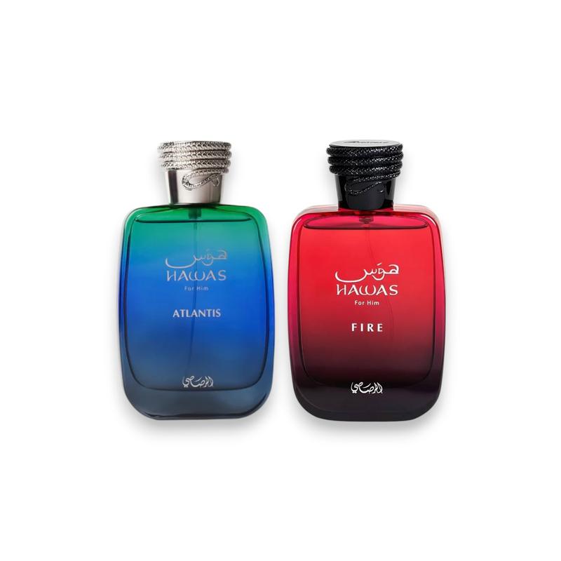 Discover the Geo's Hawas Bundle, featuring Hawas Atlantis and Hawas Fire Eau De Parfum. This unisex fragrance comes in a 100 ML bottle, perfect for those who love citrus, fruity, and sweet notes. The bundle combines the essence of Atlantis and Fire, offering a versatile scent experience. Ideal for everyday wear, this fragrance is a must-have for fragrance enthusiasts.