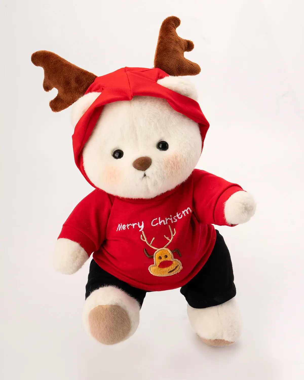 Getahug Red Sweatshirt Teddy Bear - Handmade Plush Toy, Cute Face with Blush, Stuffed Animal, Christmas Little Gifts for Girls, Christmasgift, Christmasgiftideas