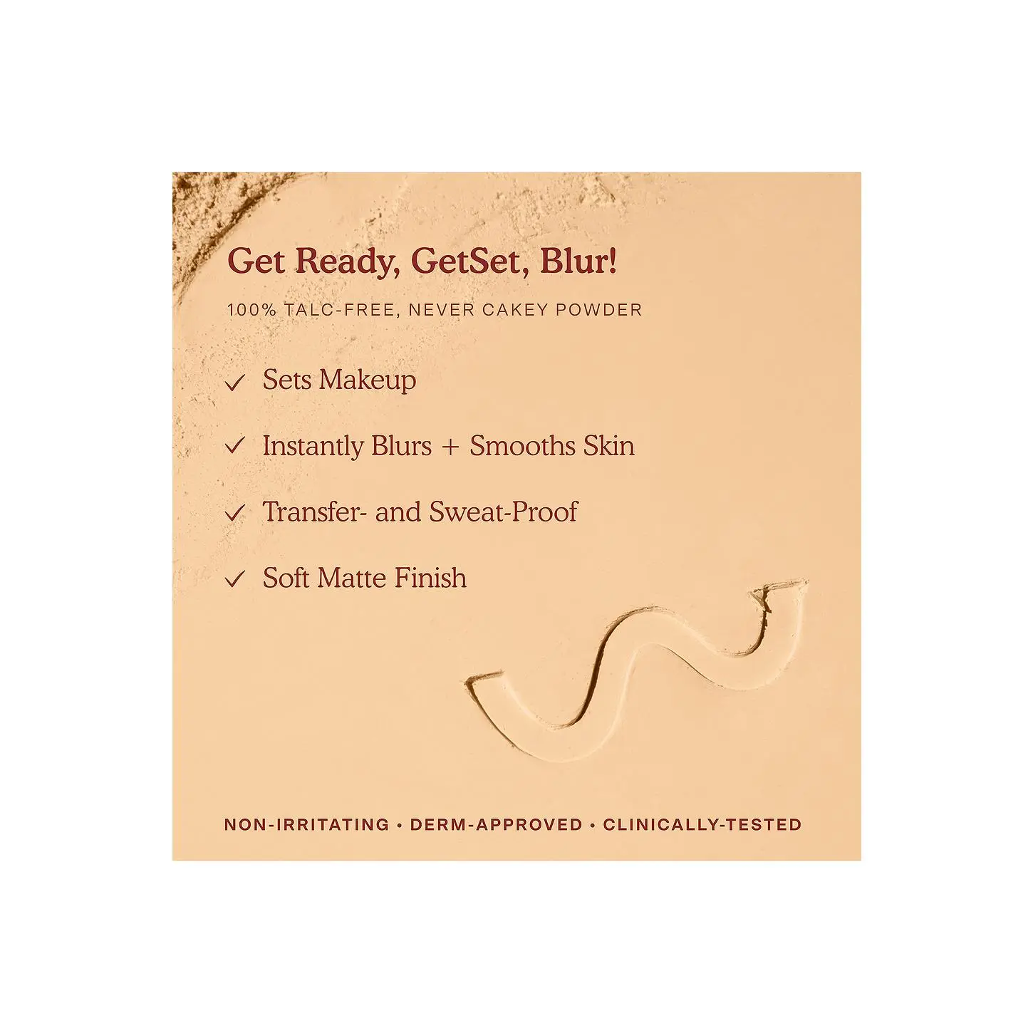 ¡A talc-free, safe for sensitive skin setting powder that instantly blurs and smooths skin, and makes any base transfer- and -sweat-proof