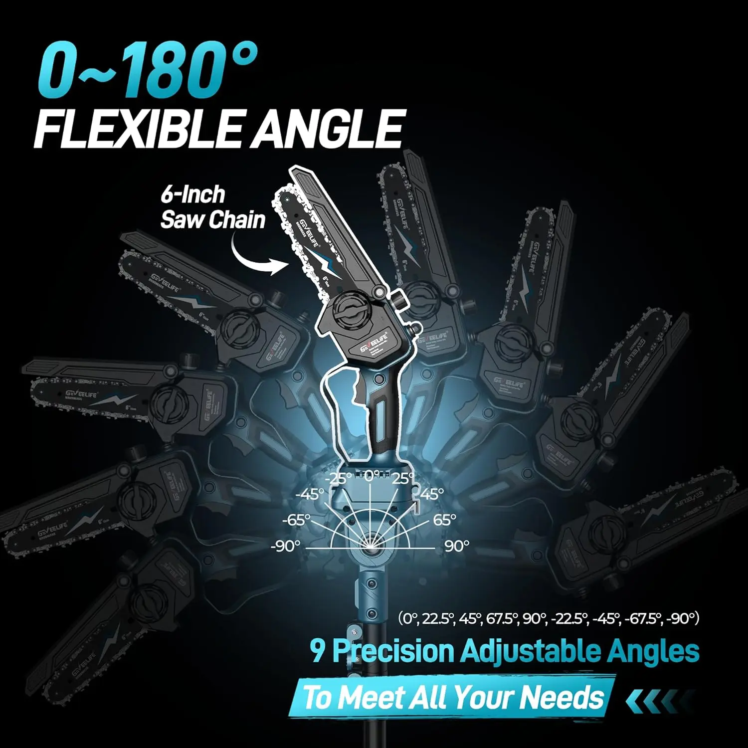 ·180° Adjustable Cutting Angle: Our tree trimmer features a flexible angle adjustment function, adjustable from 0° to 180°. You can freely select the optimal cutting angle based on your specific needs, enhancing operational flexibility and precision.