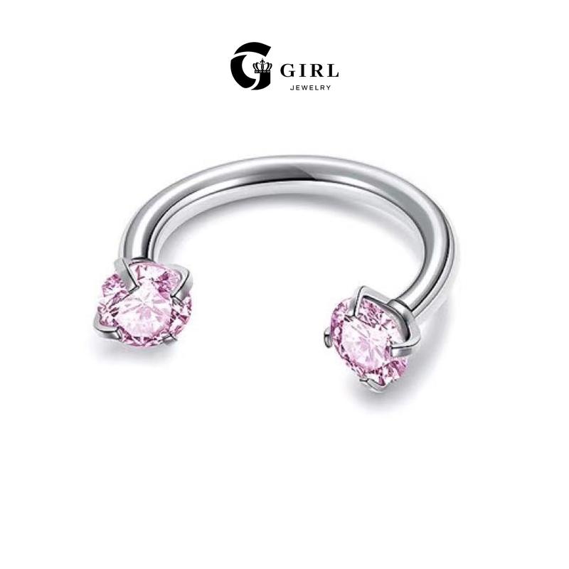 This GGIRL nose hoop features a 18G (1.0mm) gauge and an 8mm horseshoe shape. It is internally threaded for secure wear. The 3mm artificial zircon adds a touch of sparkle. Comes with a free ball holder for added convenience. Perfect for those seeking a stylish nose ring.