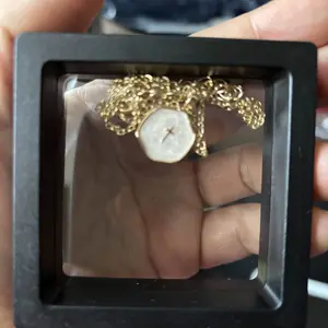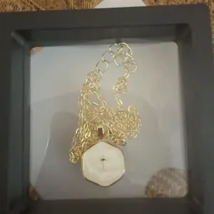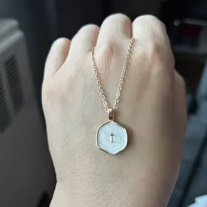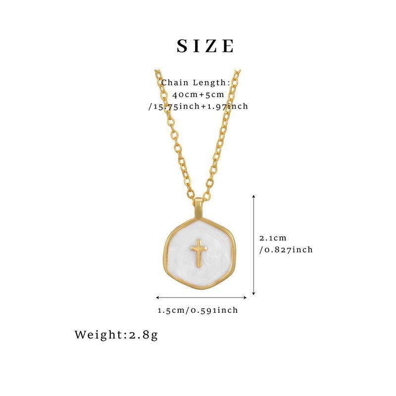 Made of hypoallergenic 18K gold-plated material, I wore it all day without any discomfort on my neck. The cross design is exquisite and simple, the pendant proportions are perfect, and the clean lines are crisp and elegant, giving it a sophisticated look. I love it; it's great value for money.