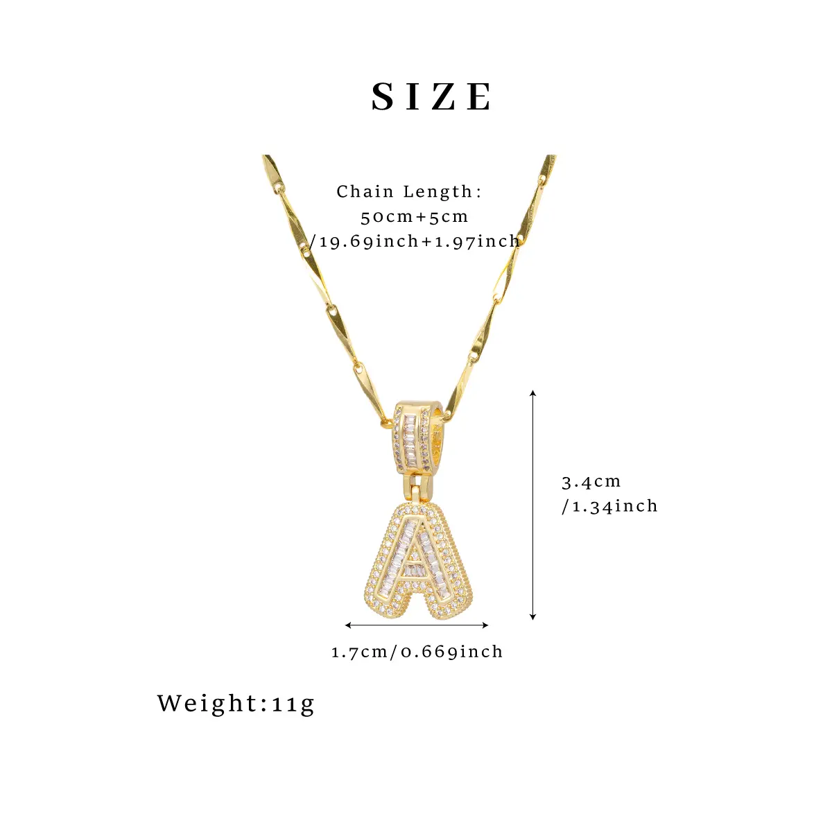 ·Customizable name pendant with zirconia letters.