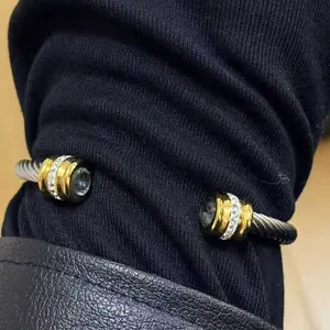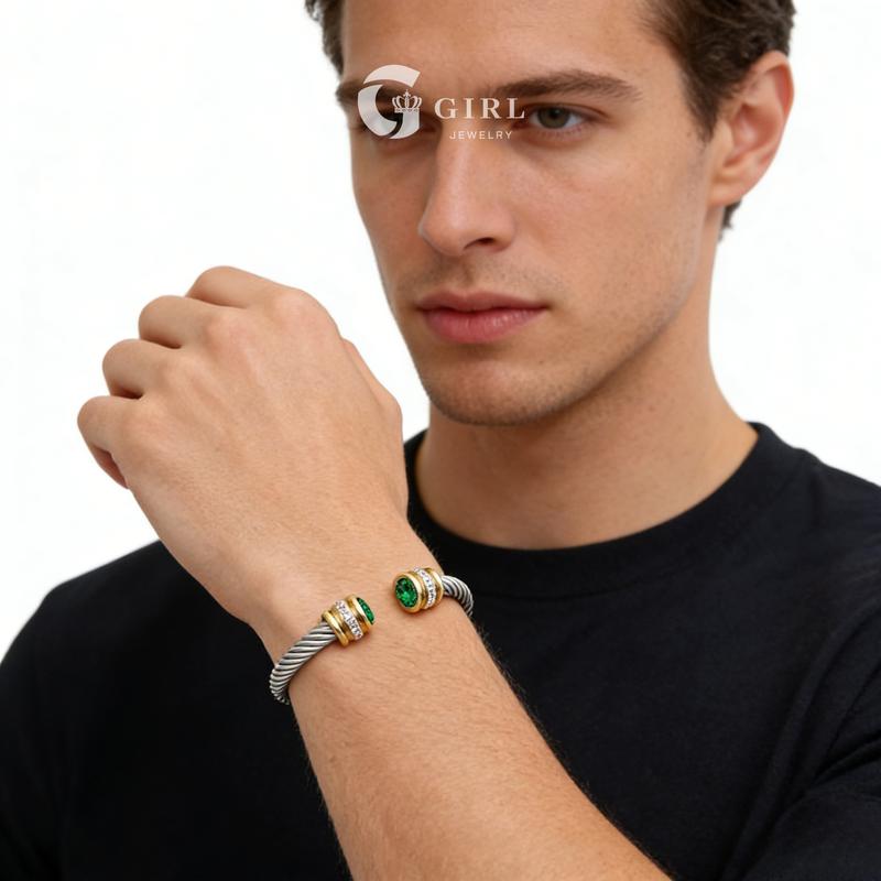 5. GGIRL Birthstone Stainless Steel Twisted Cable Cuff Bracelet For Men Womens, Multi-Color Cubic Zirconia 60mm Diameter Fashion Jewelry Gift for Holiday Haul Christmas Birthdays Anniversaries