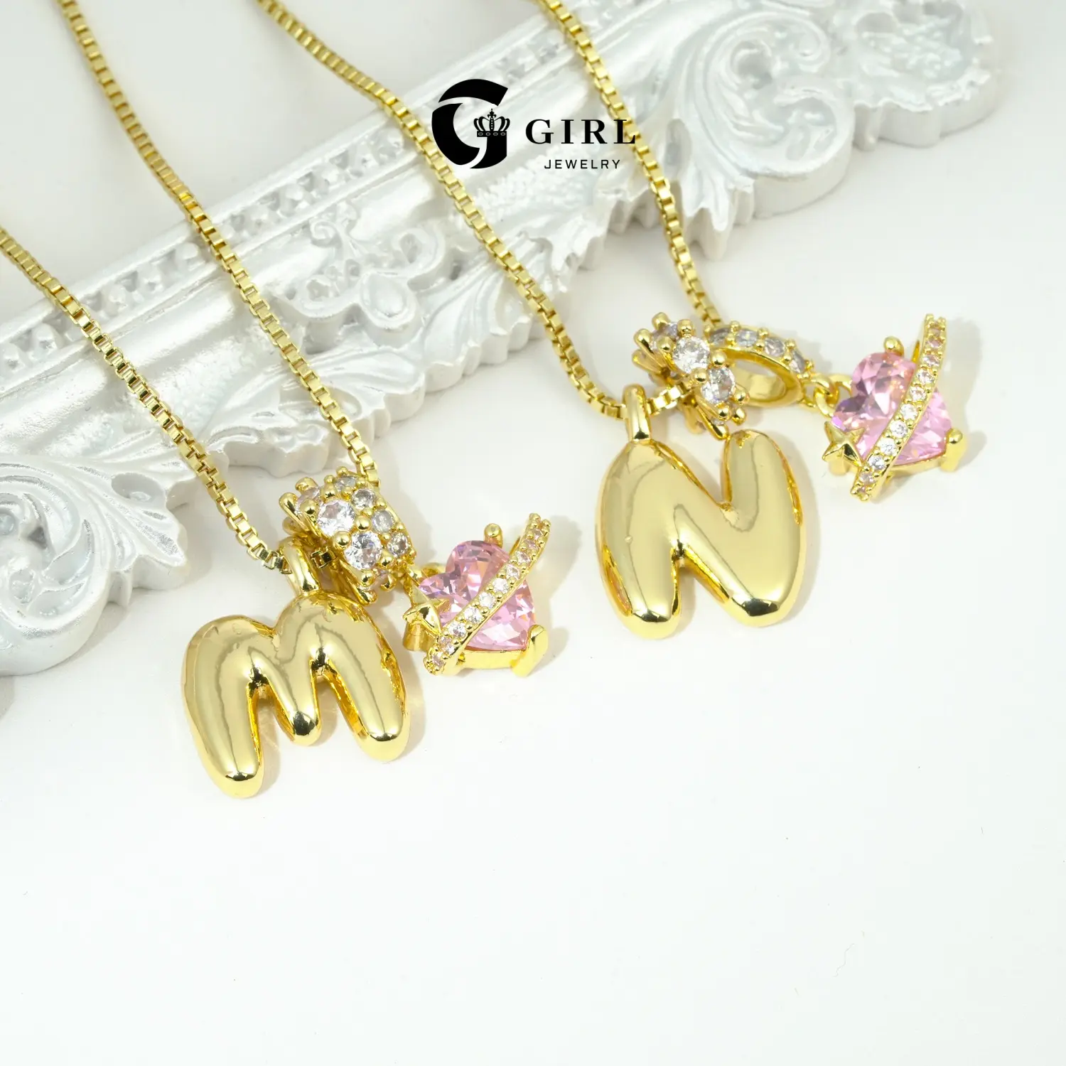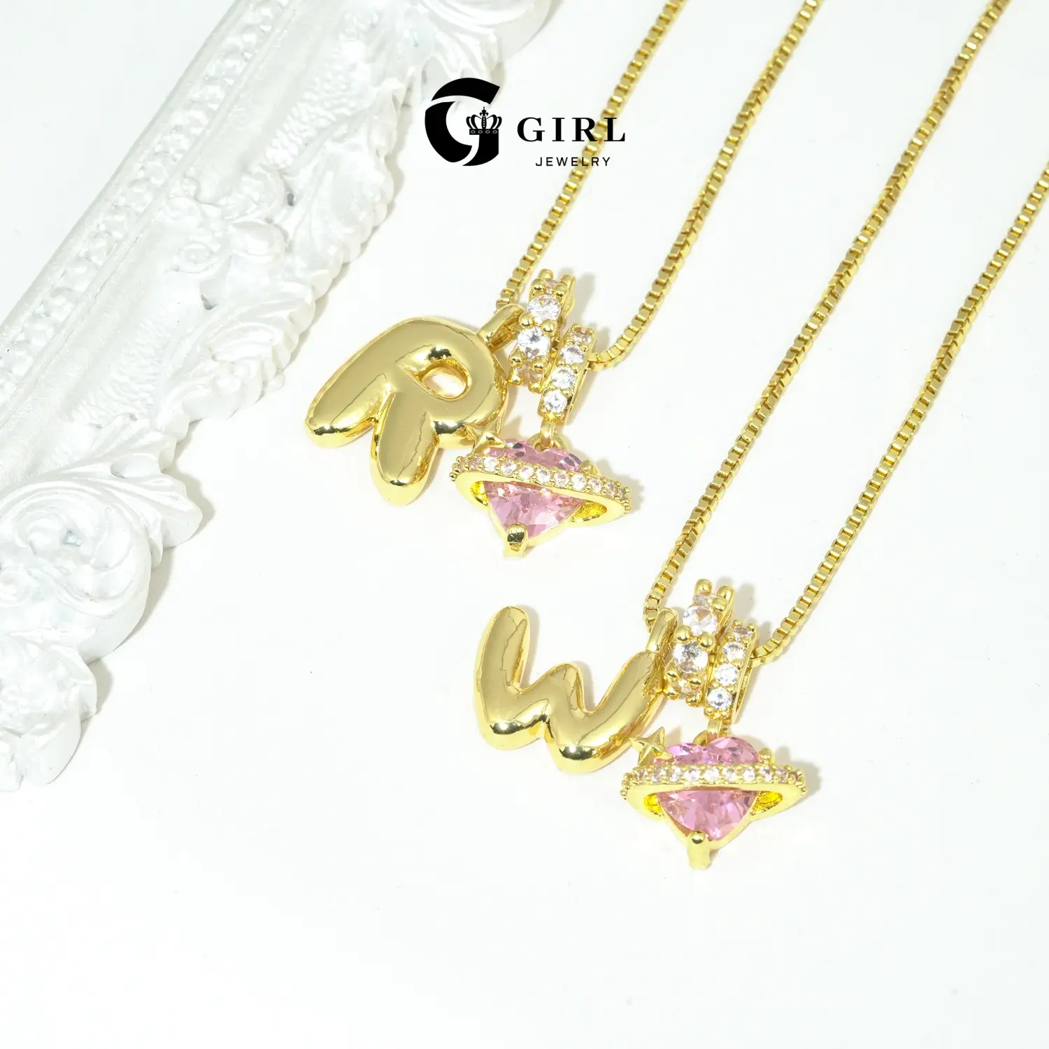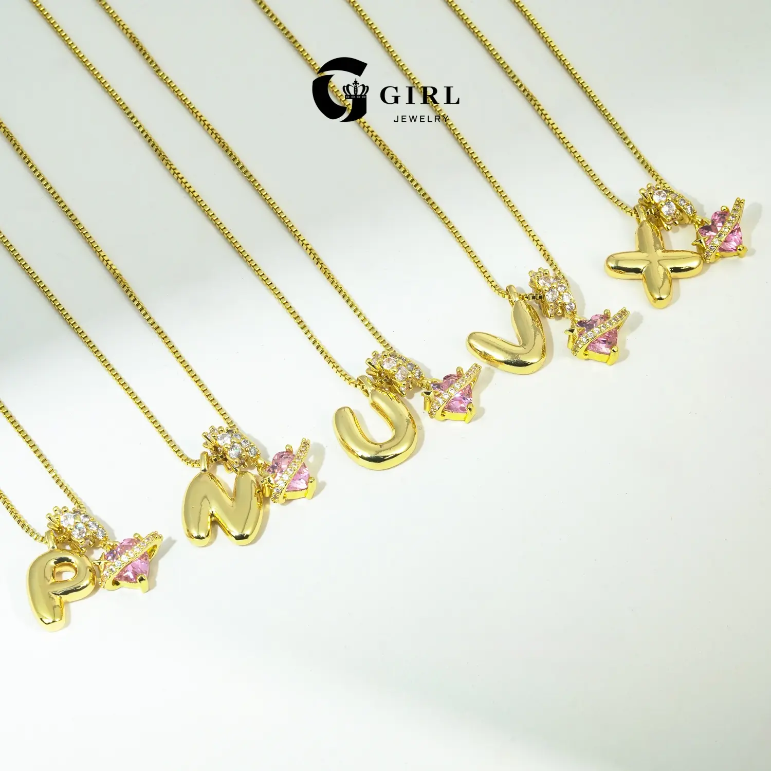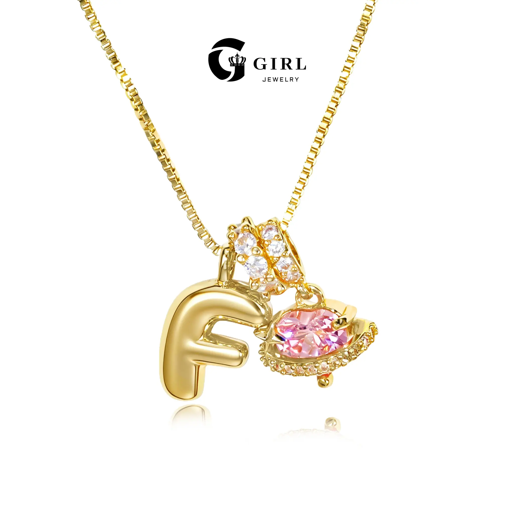 The GGIRL Bubble Letter Necklace is a perfect choice for women. It features a pink cubic zirconia pendant, adding a touch of elegance. Crafted with 18K gold plating, this necklace offers a luxurious finish. Ideal for holidays, Christmas, birthdays, and anniversaries, it makes a thoughtful gift.