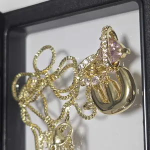 ·Material: Pink cubic zirconia pendant, 18K gold plating.