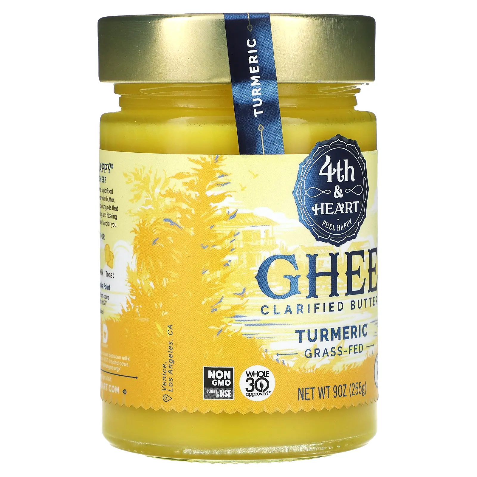 4th & Heart Ghee Clarified Butter, Grass-Fed, Turmeric, 9 oz (255 g)
