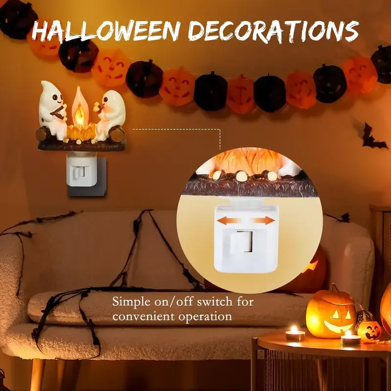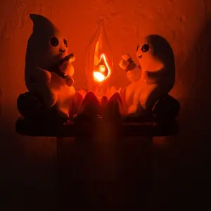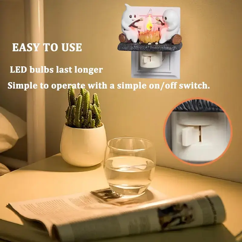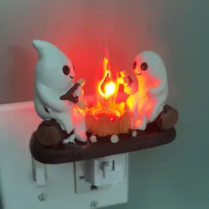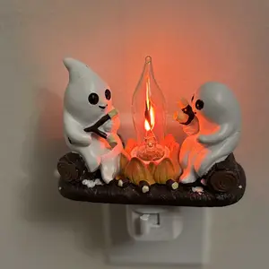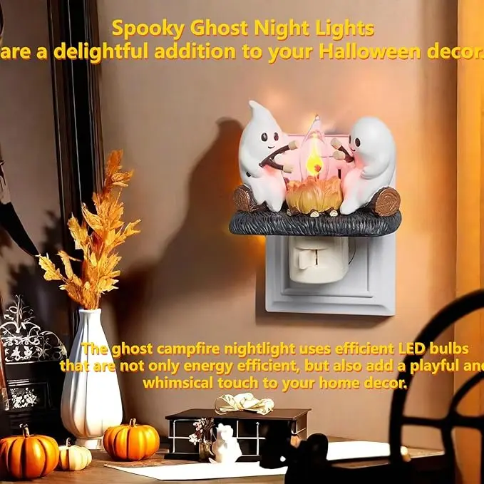 Add a touch of spookiness to your home with the Ghost Campfire Flickering Nightlight-2025. This cute night light features 2 playful ghosts roasting s'mores at a faux campfire, providing a charming and playful ambiance to any room.