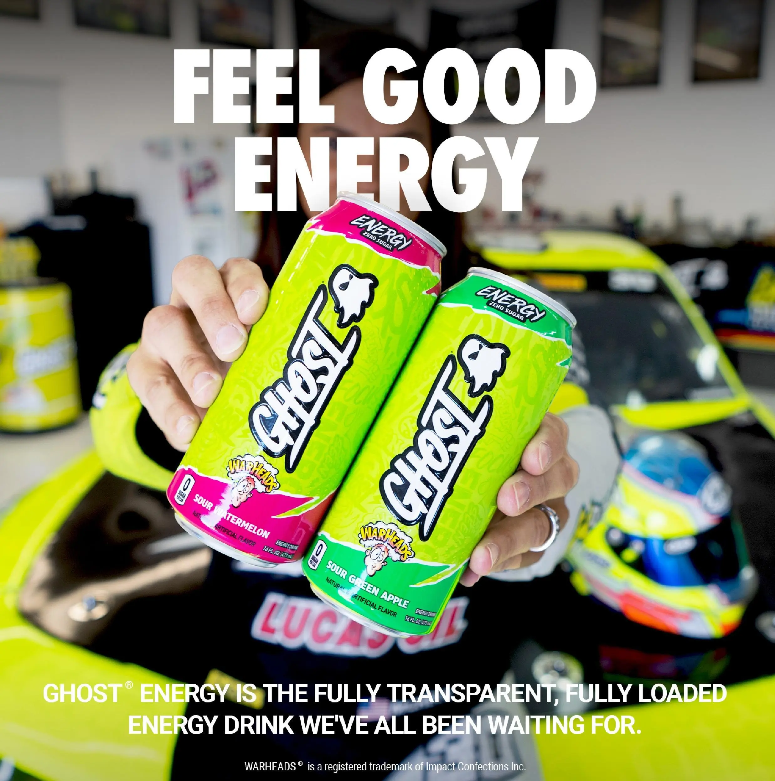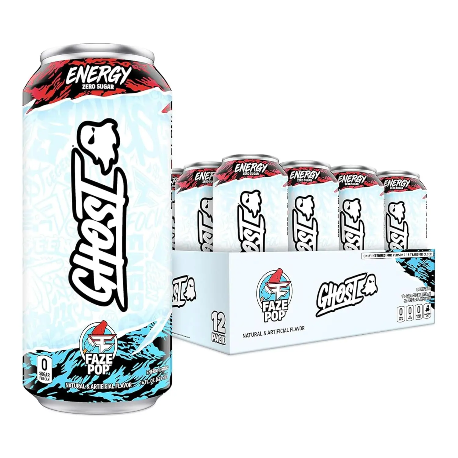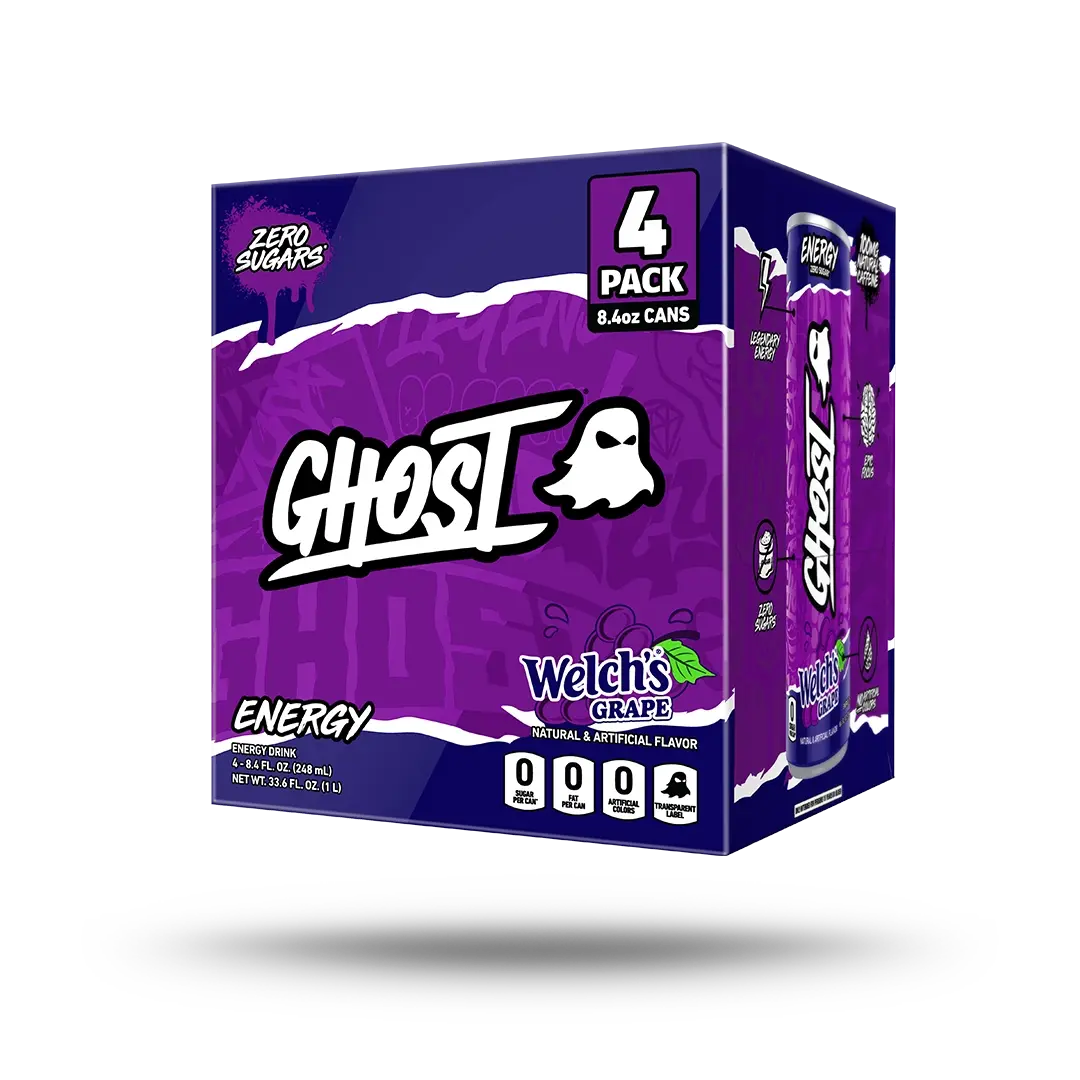 Feel Good Energy: GHOST Energy is the fully transparent, fully loaded energy drink we’ve all been waiting for—authentic flavors, zero sugars*, and no BS. Now available in a variety of sizes and packs, including 4-pack (8.4oz), 4-pack (16oz), and 12-pack (16oz) cases. Only intended for persons 18 years or older. *GHOST Energy is low in calories.