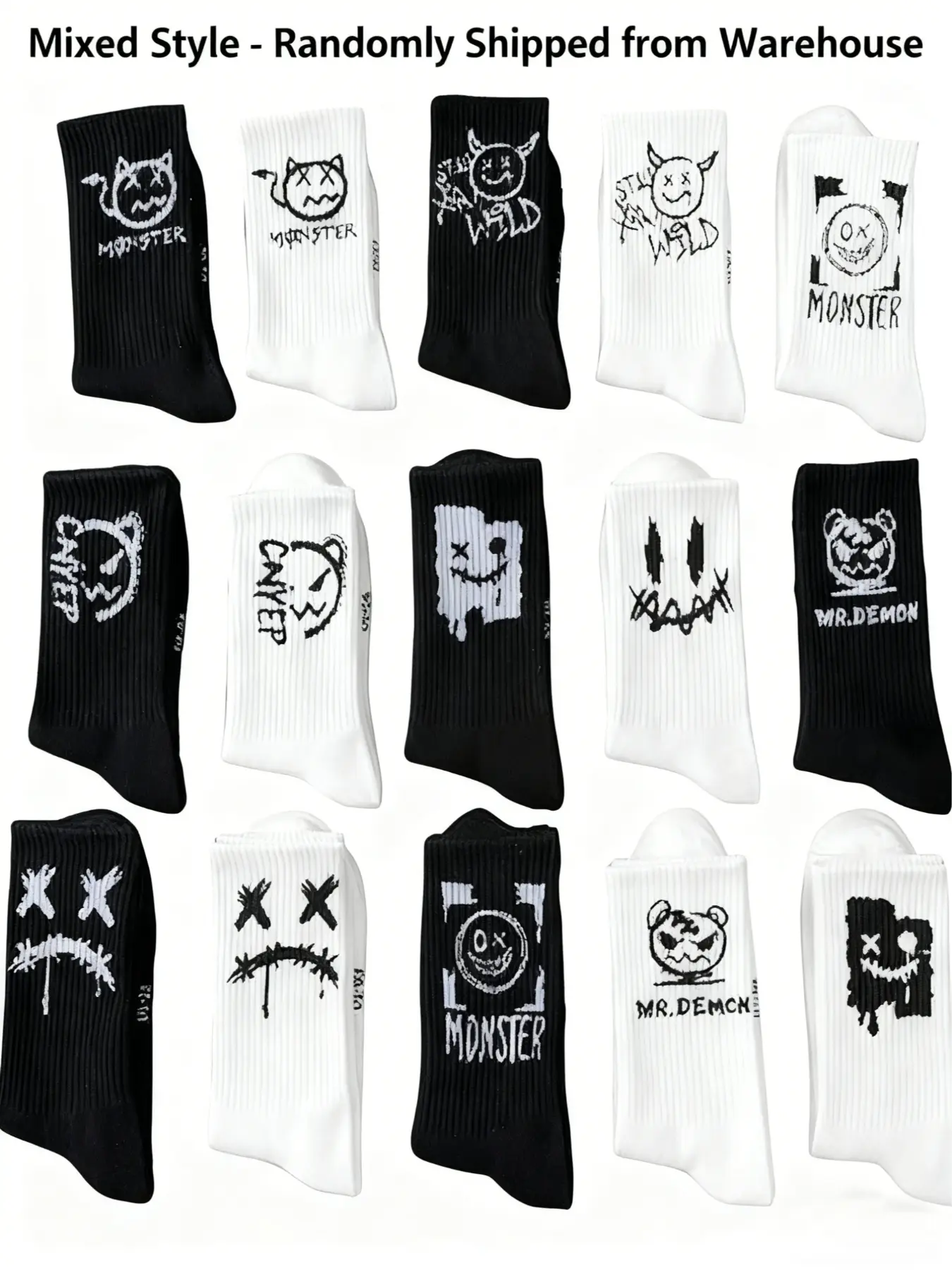 10 Pairs Ghost Face Graffiti Prints Long Socks, Trendy Basketball Sports Mid-Calf Socks, Random Style, All Seasons Fashion, Casual Daily Socks