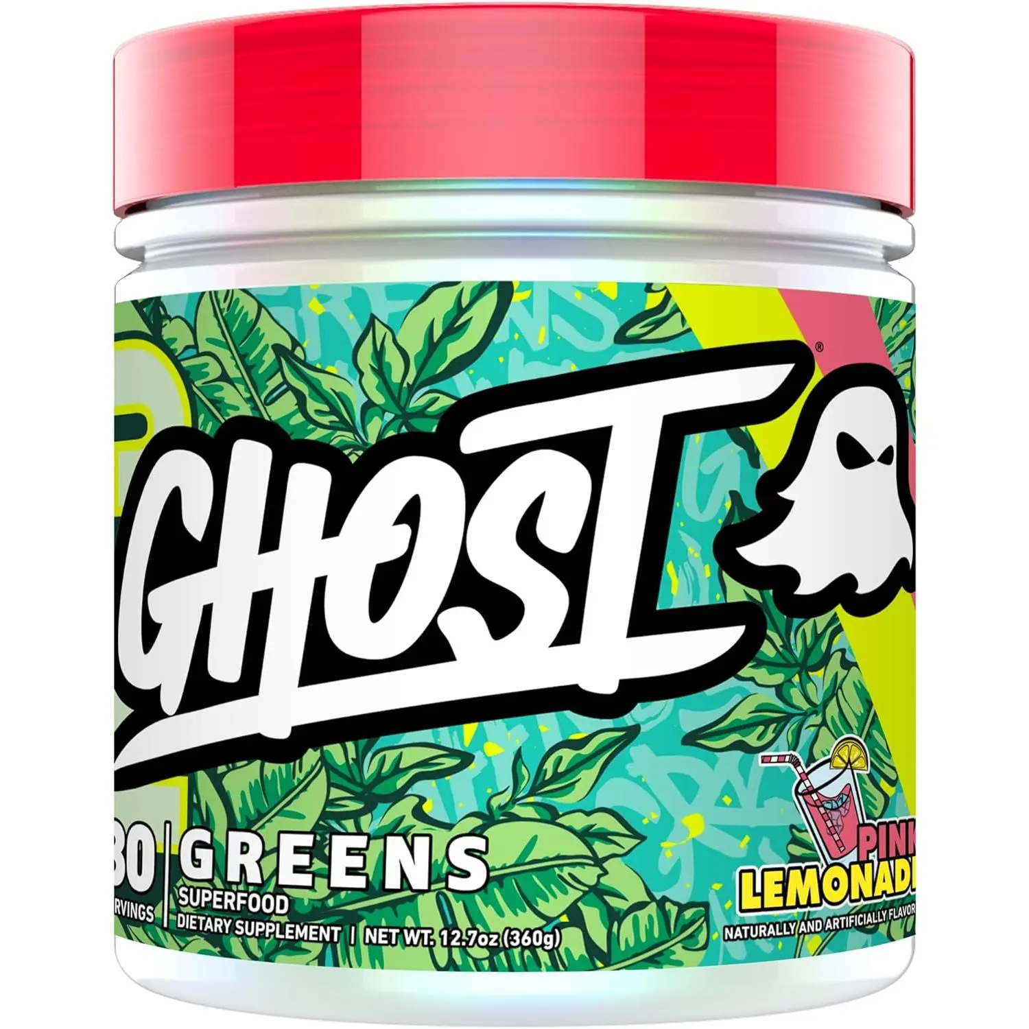 GHOST Greens Powder - 30 Servings - 19 Superfood Greens & Reds Powder, Fruits, Vegetables, Spirulina, & Chlorella, Prebiotics, 10 Billion CFU Probiotic & Digestive Enzymes - Gluten-Free