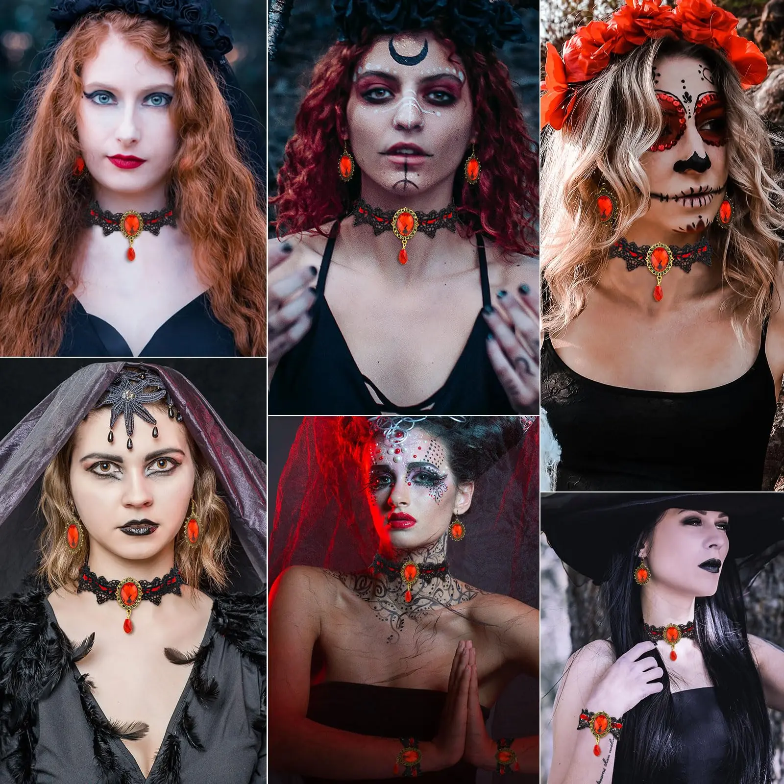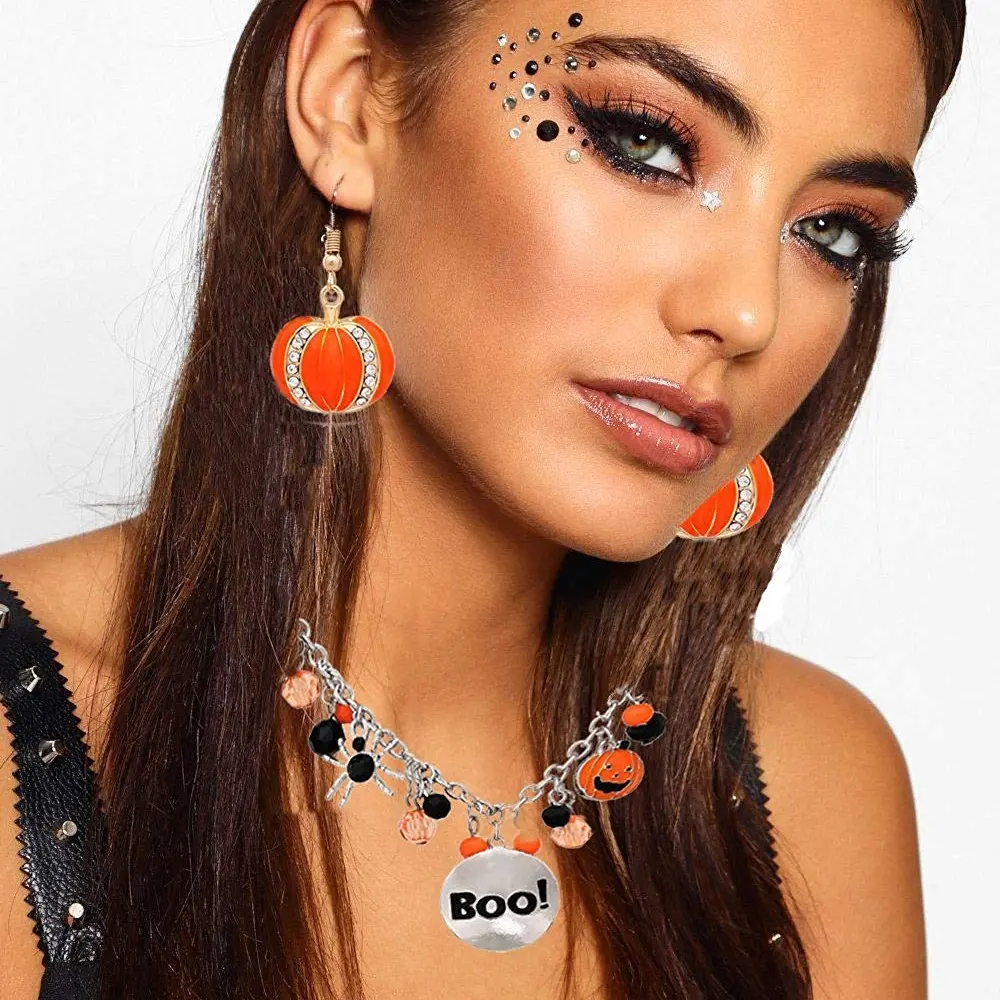 ·Title: Halloween Ghost Jewelry Set Beaded BOO Pumpkin DIY Pendant Necklace Drop Earrings Gothic Lace Vampire Pendant Chain For Costume Party 16in+2in Extension