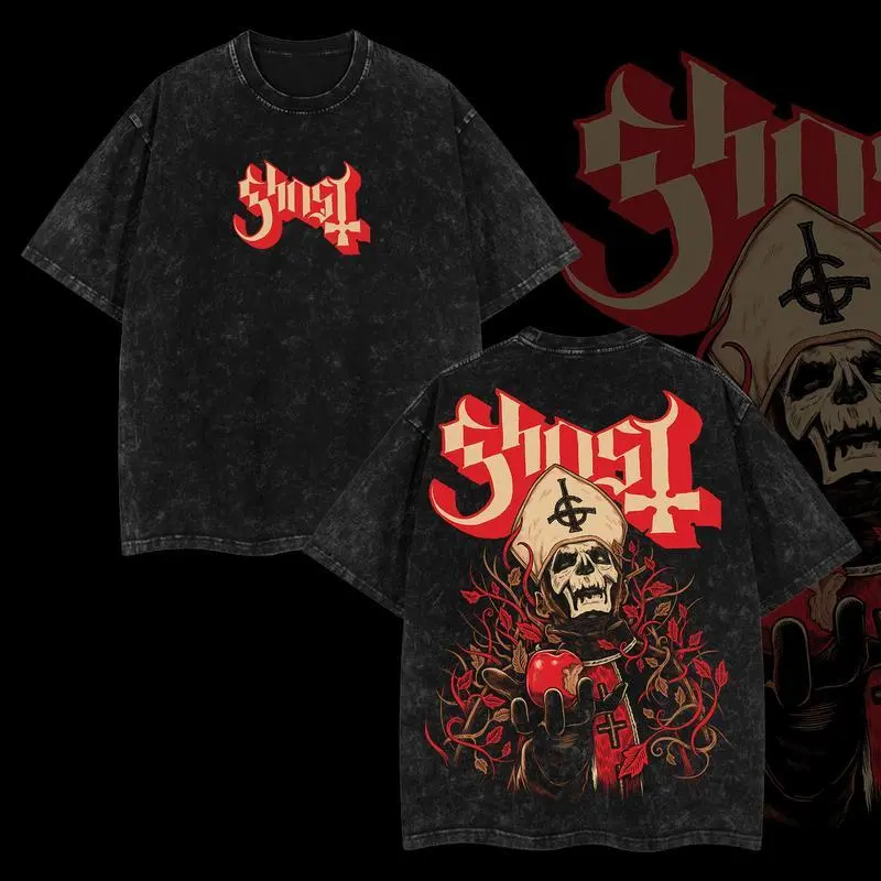 5. Ghost Papa Emeritus Two-Sided Washed Shirt, Ghost Band Papa V Unisex Oversize Rock Band Washed Heavyweight Cotton T-shirt, Gift For Rock Music Lovers , Gothic Punk Emo Grunge Y2K Outfits