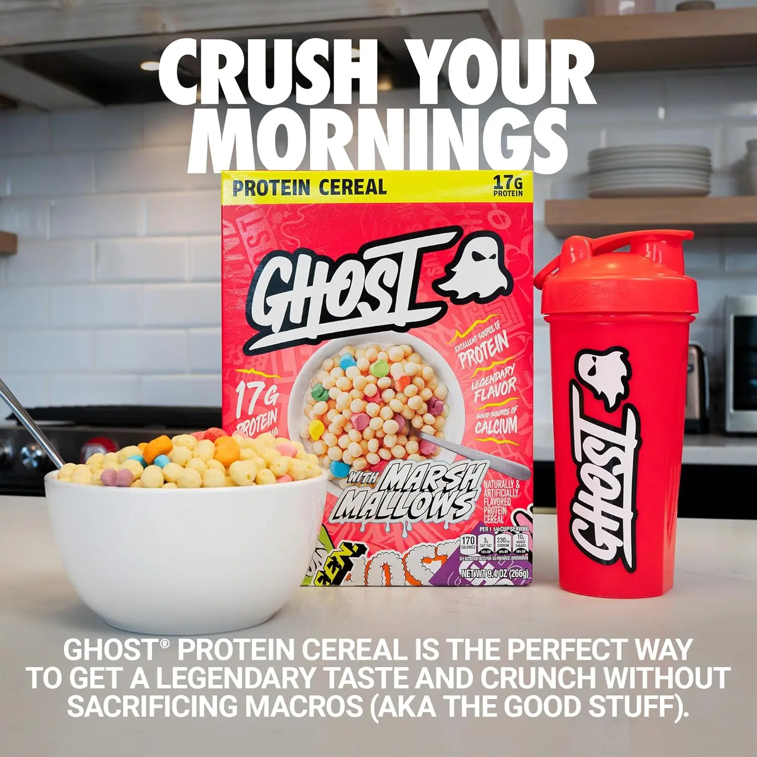 G.O.A.T Protein Cereal: Crush your mornings and workouts with GHOST Protein Cereal “Marshmallow” or “Peanut Butter." Whether it's a mashup of crunchy cereal puffs and Lucky Charms marshmallows or the legendary peanut butter taste you know and love, each flavor delivers without sacrificing macros. Grab a box for a crave-worthy, high protein cereal to help you stay on track from morning to night! Includes three 9.4oz or 10.8oz boxes.