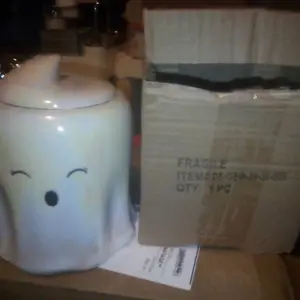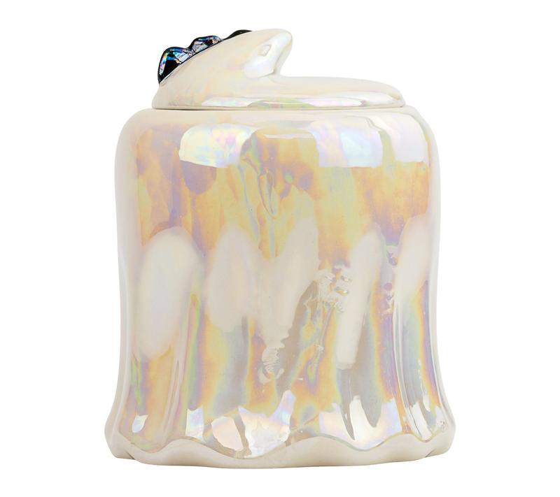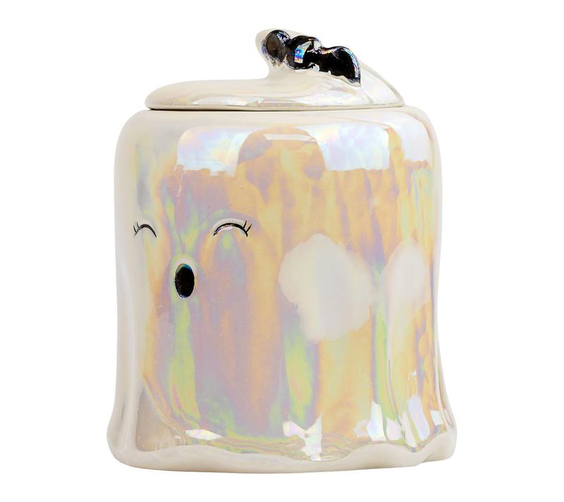 A playful ghost-themed canister brings a bit of Halloween cheer to your kitchen, making treat storage both fun and festive. Whether you're keeping cookies fresh or displaying candies, the cheerful design and handy gasket lid create a delightful centerpiece for seasonal gatherings or everyday enjoyment. From 10 Strawberry Street.