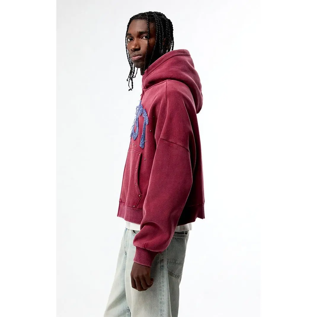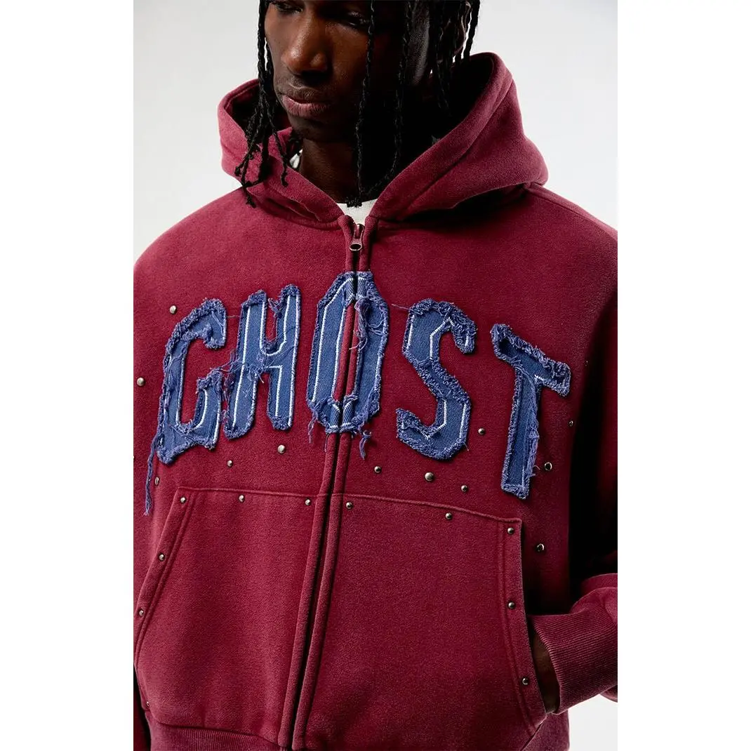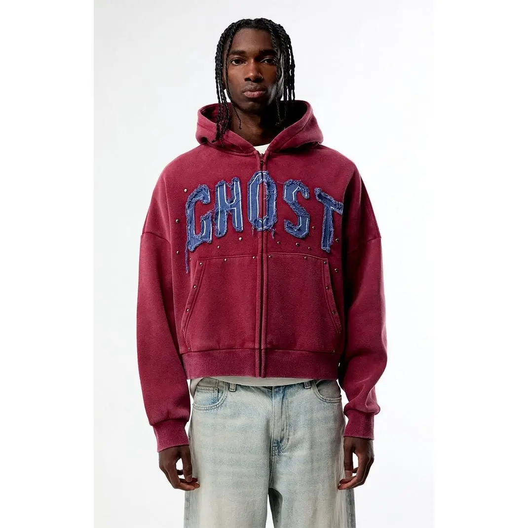 Elevate your casual look with the Ghost Washed Cropped Full Zip Hoodie from Pacsun. Featuring a cozy soft fleece lining, attached hood, full zipper front closure and side pockets, this cropped hoodie stands out with its front raw lettering appliques and studded metal details.