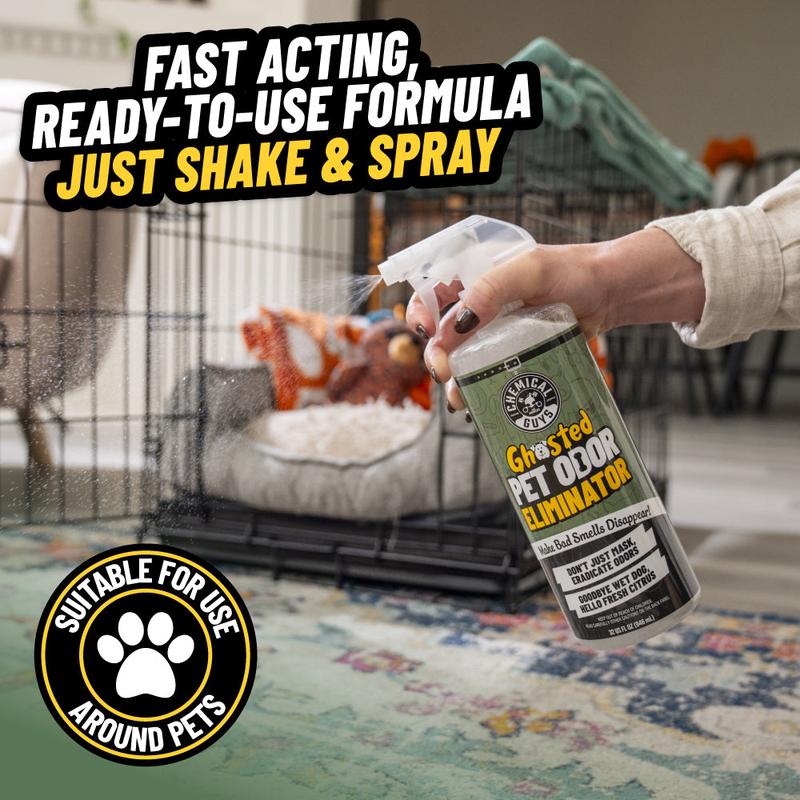 Ghosted Pet Odor Eliminator penetrates deep to neutralize even the most persistent, smelly pet odors, whether it’s litter box smells, urine, dander, or drool, eliminating them at their source rather than just masking them. Say goodbye to tough odors and hello to a clean, fresh space!