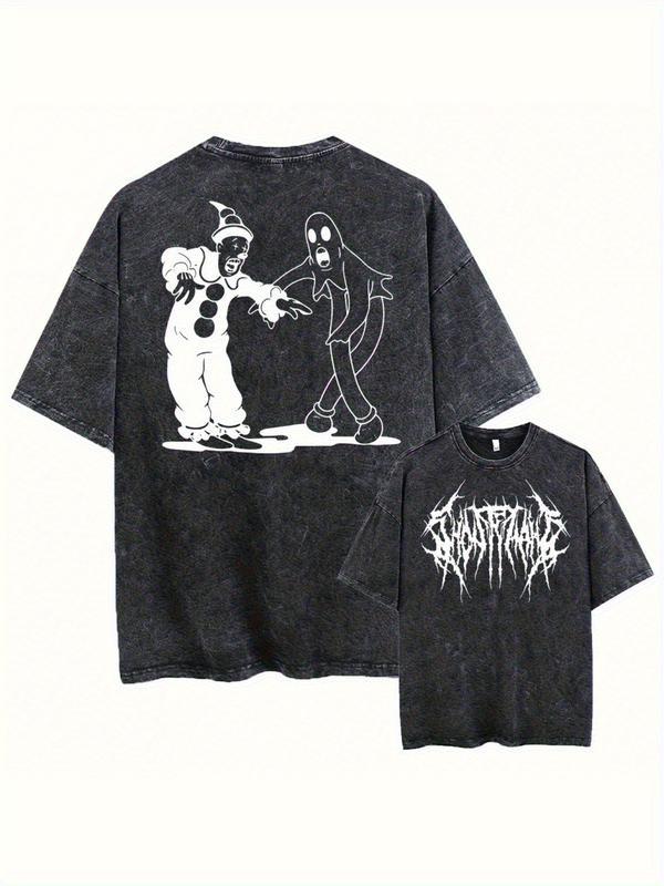 Ghostemane Oversized Unisex T-Shirt - Double-Sided Washed Print Vintage Gothic Rock & Hip Hop Streetwear Tee with Clown & Logo, 100% Cotton Black Relaxed Fit Round Neck, Durable Casual Wear for & bakugo vintage