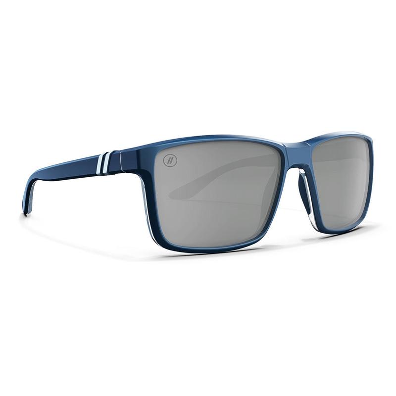 Overview: The Mesa Ghoster sunglasses from Blenders Eyewear feature a bold, single-lens design with a metallic blue frame and gloss crystal clear interior. These sunglasses offer polarized silver mirrored lenses that reduce glare and enhance visual clarity, making them ideal for everyday wear and outdoor activities.