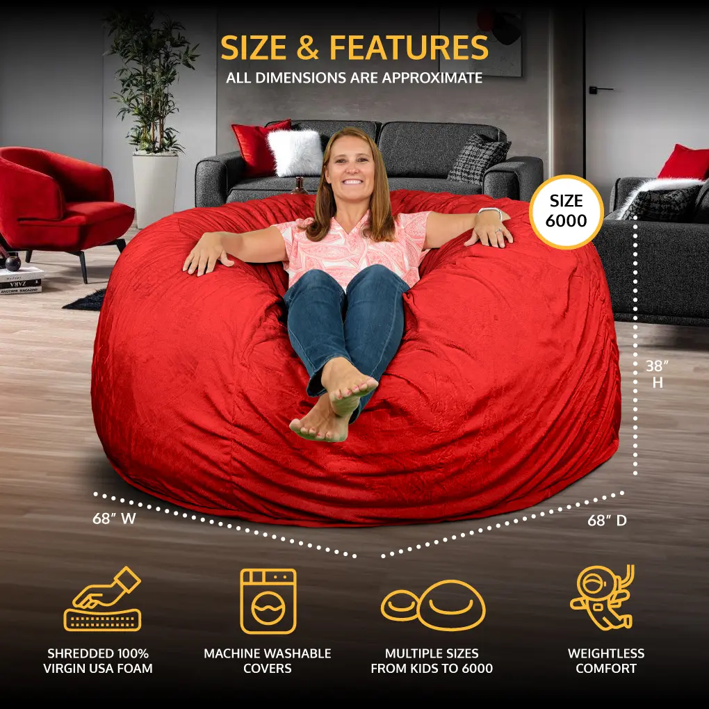 The Ultimate Sack 6000 Giant Bean Bag Chair Details: